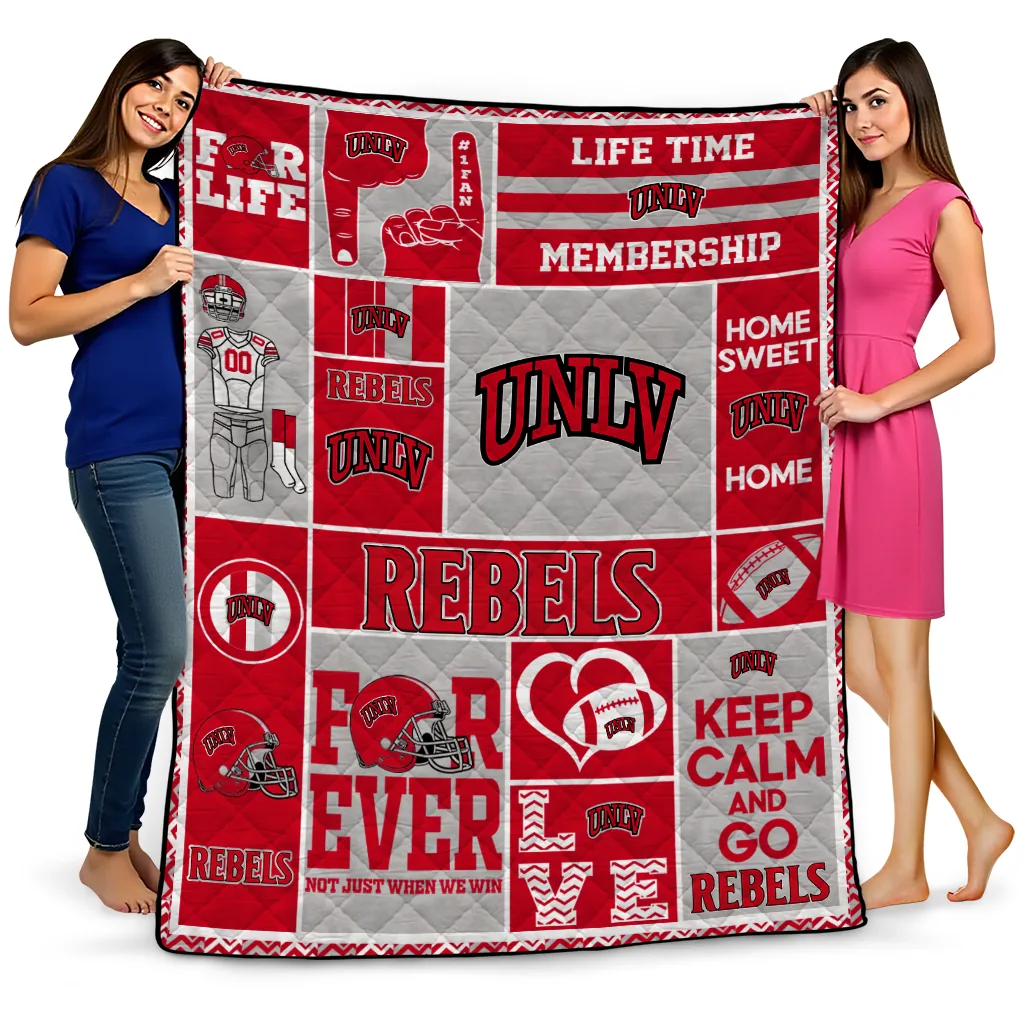 Wrap yourself in warmth and pride with the Customized UNLV Rebels Helmet Passion Red Quilt Blanket from the UNLV Rebels Blankets collection at Yes That Blanket. Made from 100% premium quilting-weight polyester blended with a touch of microfiber, this quilt offers a smooth, soft finish you’ll love. Choose between two quilting styles—Stipple or Diagonal—and enjoy the comfort of a cotton-filled layer inside that adds extra coziness for every season. The border is available in classic black or white, giving your design a clean, timeless edge.