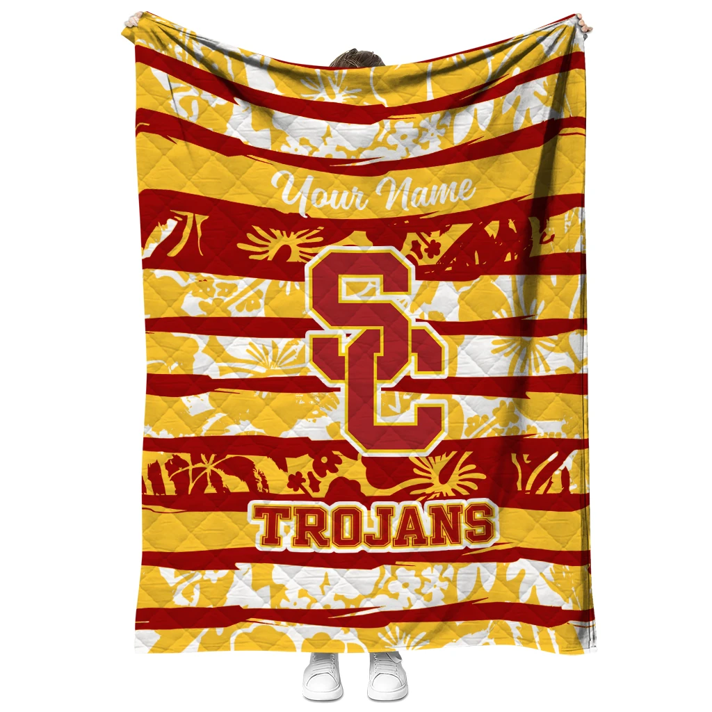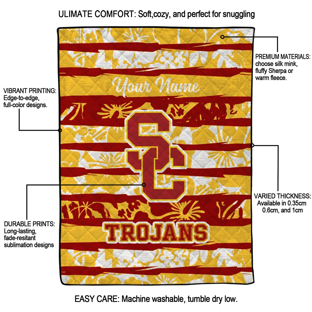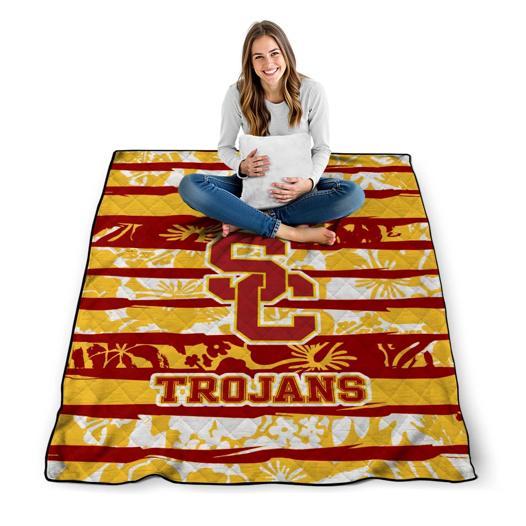 The Customized USC Trojans Layered Florals Red White Quilt Blanket is more than a blanket—it’s everyday comfort, thoughtfully made. Crafted from premium quilting fabric with a soft microfiber touch, it offers a smooth hand-feel and lasting coziness. Layered quilting with a cotton-filled core provides adaptable warmth across seasons while maintaining a clean, tailored look on your bed or sofa.