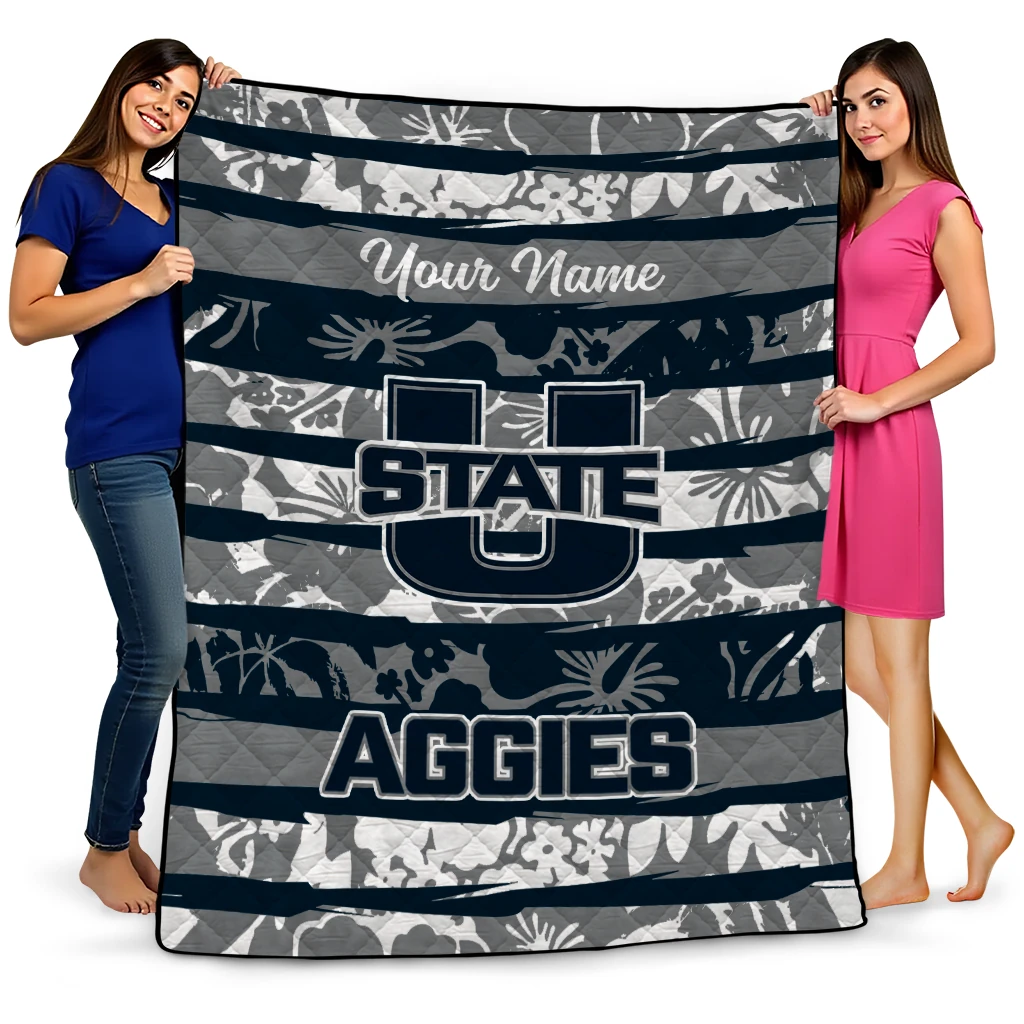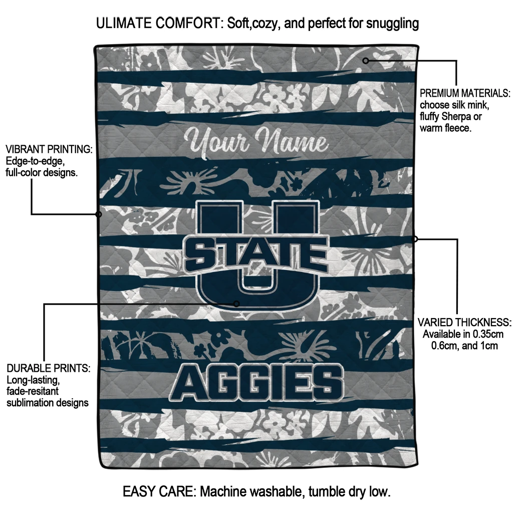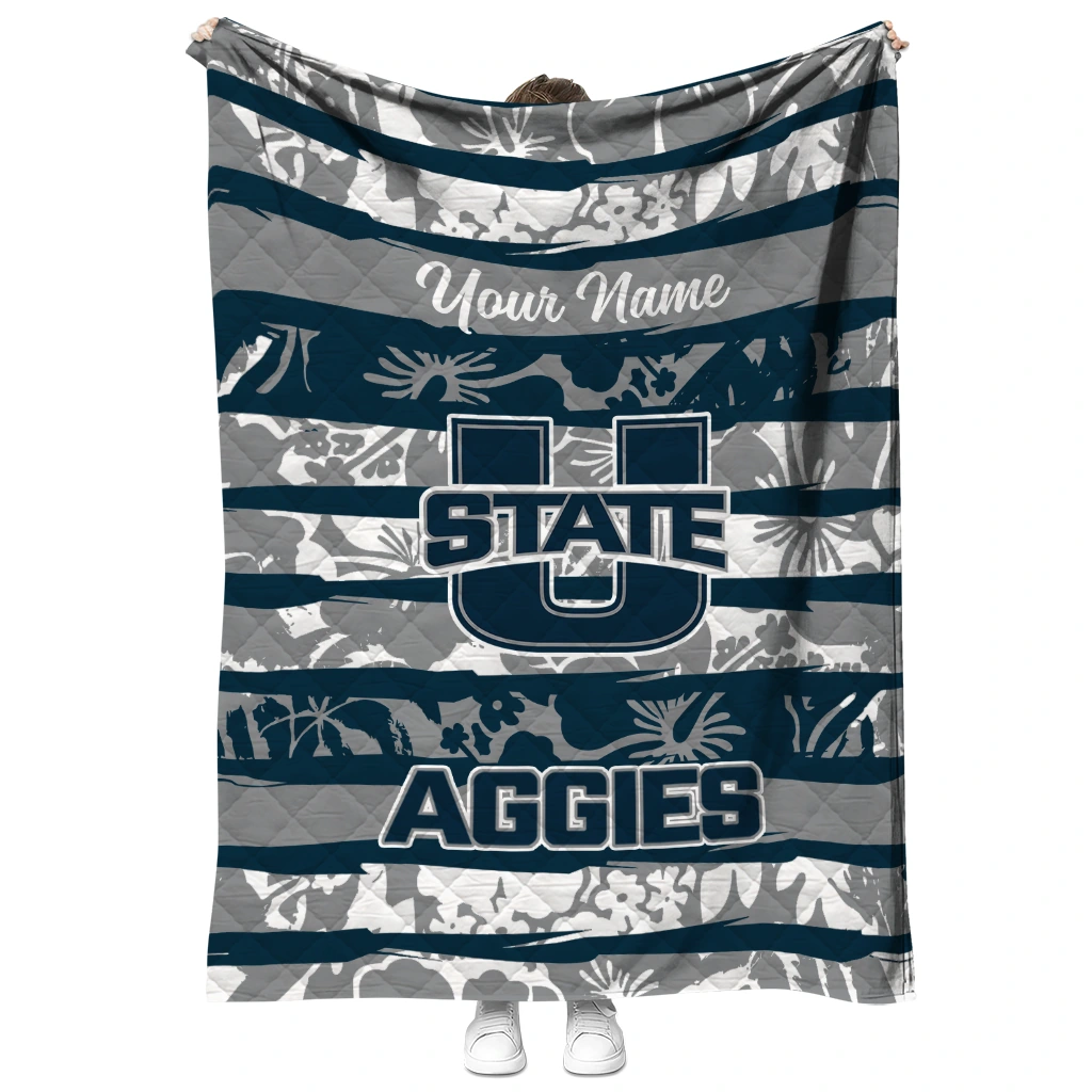 Wrap yourself in warmth and pride with the Customized Utah State Aggies Layered Florals Navy White Quilt Blanket from the Utah State Aggies Blankets collection at Yes That Blanket. Made from 100% premium quilting-weight polyester blended with a touch of microfiber, this quilt offers a smooth, soft finish you’ll love. Choose between two quilting styles—Stipple or Diagonal—and enjoy the comfort of a cotton-filled layer inside that adds extra coziness for every season. The border is available in classic black or white, giving your design a clean, timeless edge.