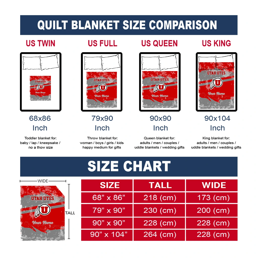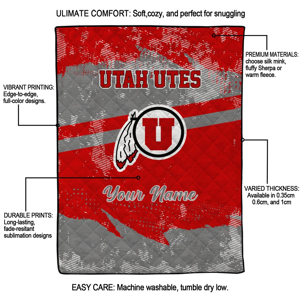 Wrap yourself in warmth and pride with the Customized Utah Utes Brushstroke Layers Red Quilt Blanket from the Utah Utes Blankets collection at Yes That Blanket. Made from 100% premium quilting-weight polyester blended with a touch of microfiber, this quilt offers a smooth, soft finish you’ll love. Choose between two quilting styles—Stipple or Diagonal—and enjoy the comfort of a cotton-filled layer inside that adds extra coziness for every season. The border is available in classic black or white, giving your design a clean, timeless edge.