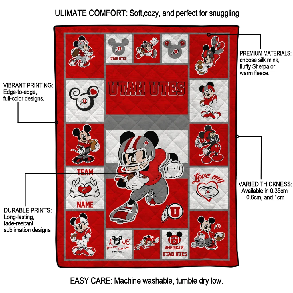 Be the first to review “Customized Utah Utes Mickey Crimson Red White Quilt Blanket”