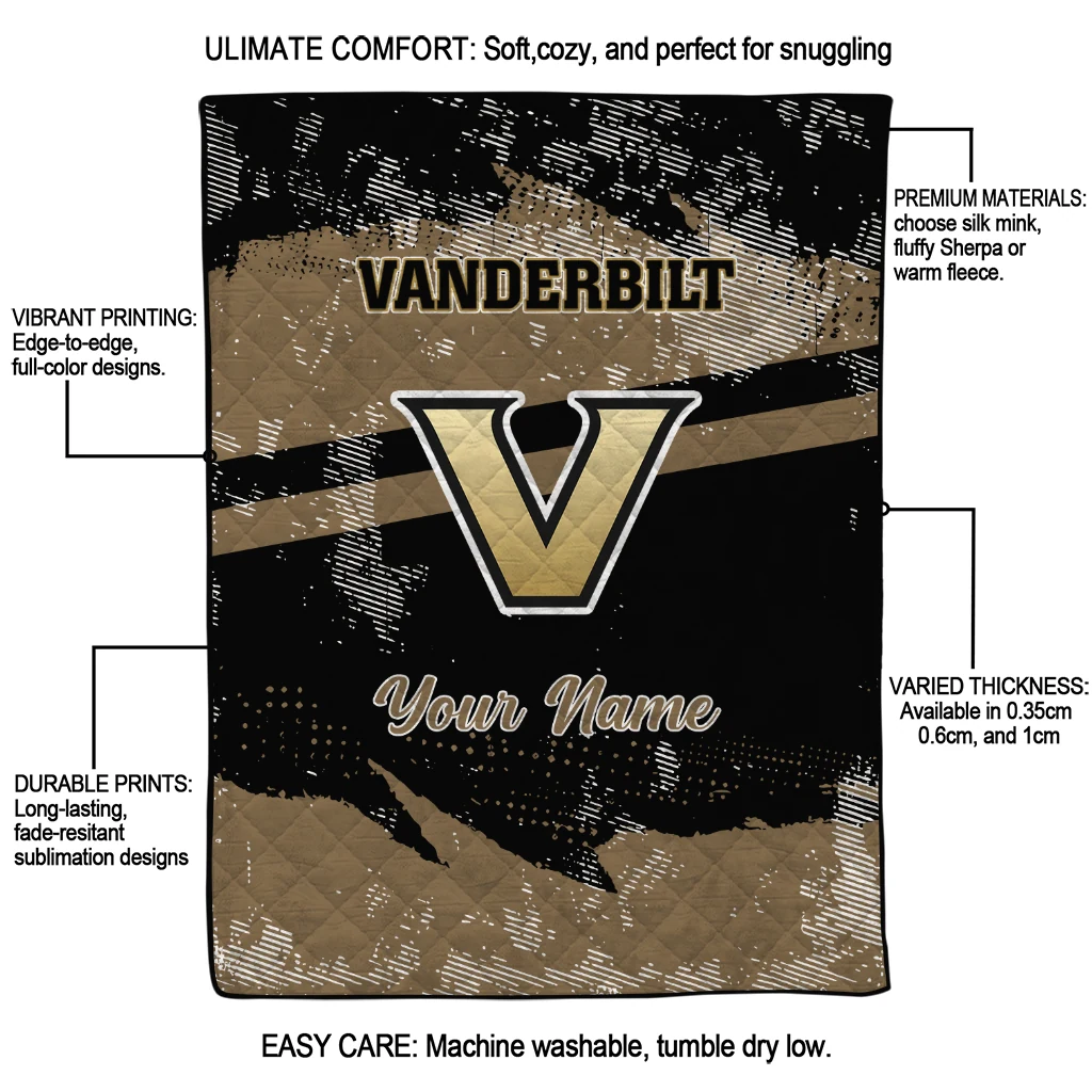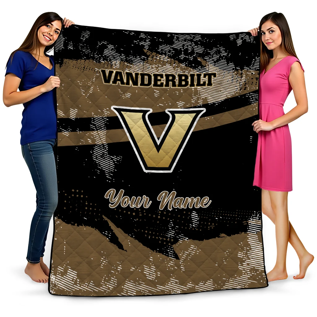 Customized Vanderbilt Commodores Brushstroke Layers Black Quilt Blanket