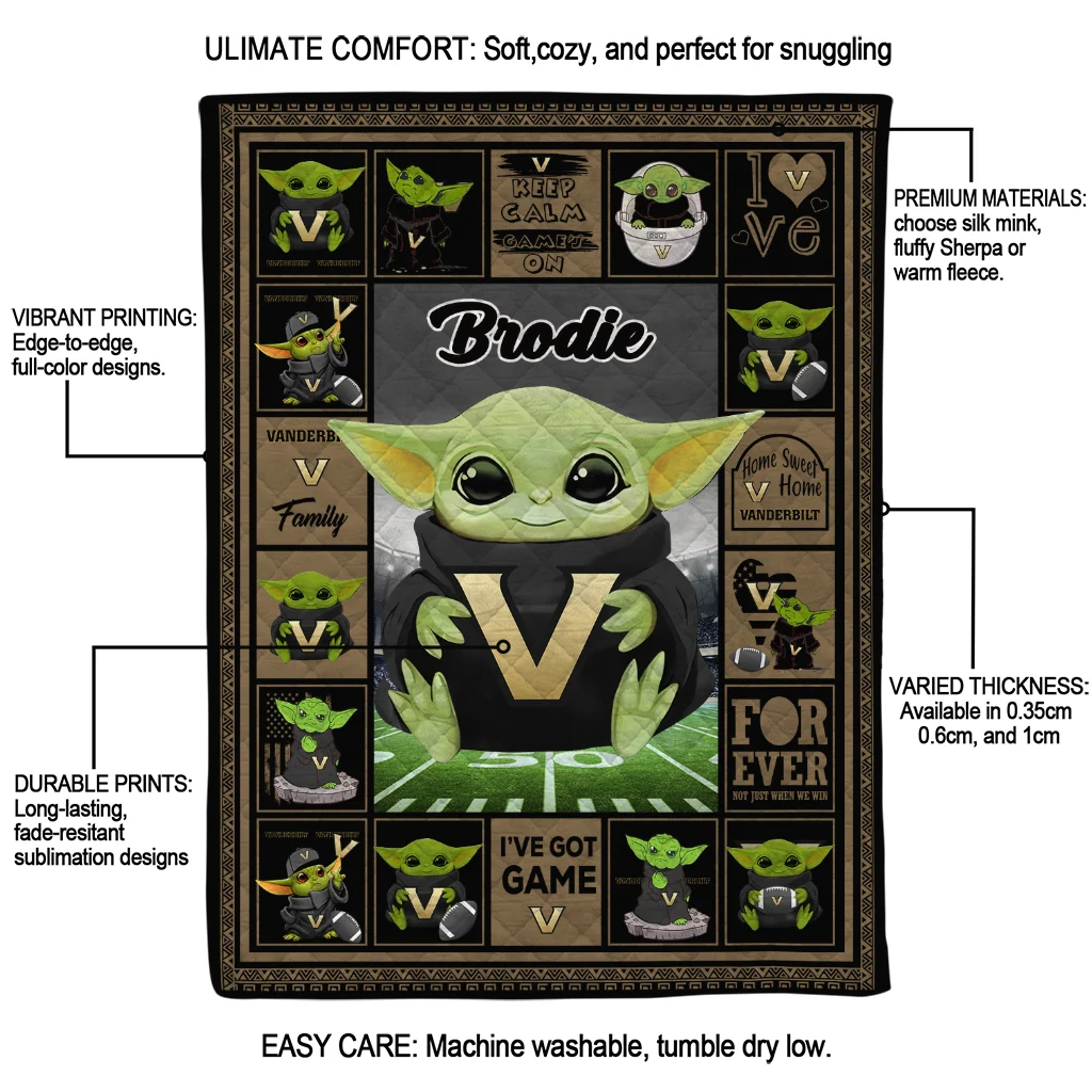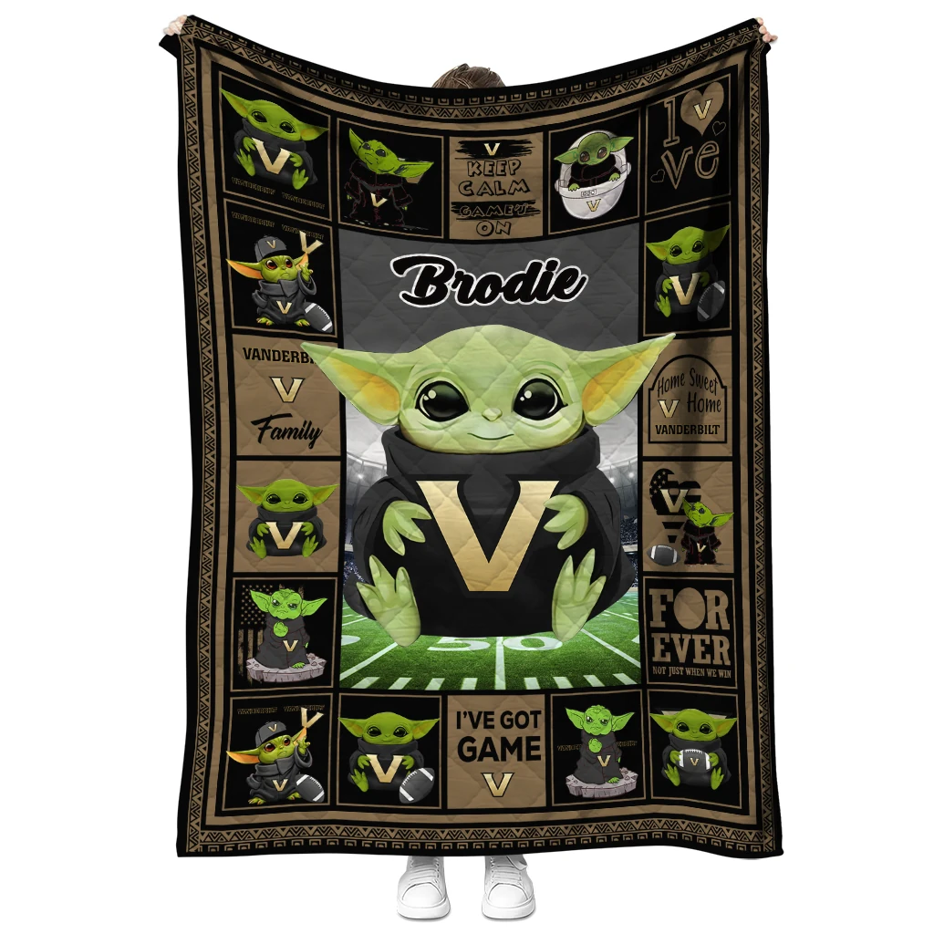 Customized Vanderbilt Commodores Yody Baby Pattern Black Quilt Blanket