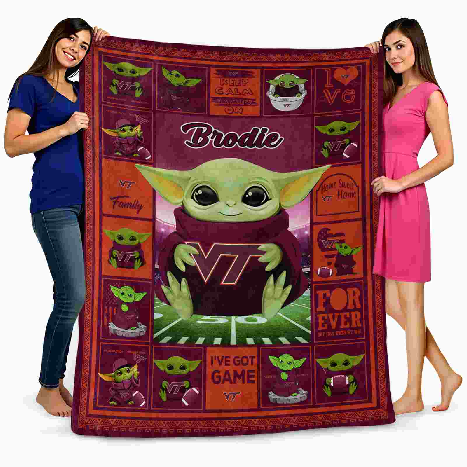 Without a doubt, the Customized Virginia Tech Hokies Baby Yoda Maroon Blanket from Virginia Tech Hokies Blankets collection is offering true fans a chance to showcase passion in a cool way. Personalize it with your favorite team’s logo or a meaningful name to make it uniquely yours. Isn’t that great? The full-color print ensures vibrant, edge-to-edge designs, bringing your sports enthusiasm to life!