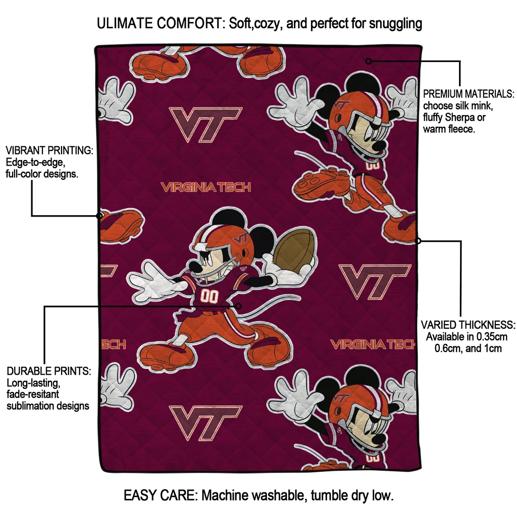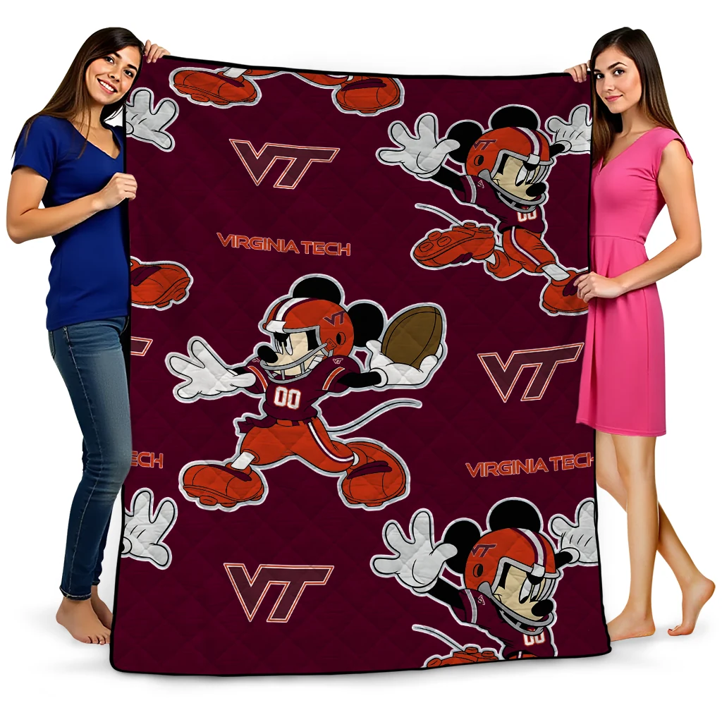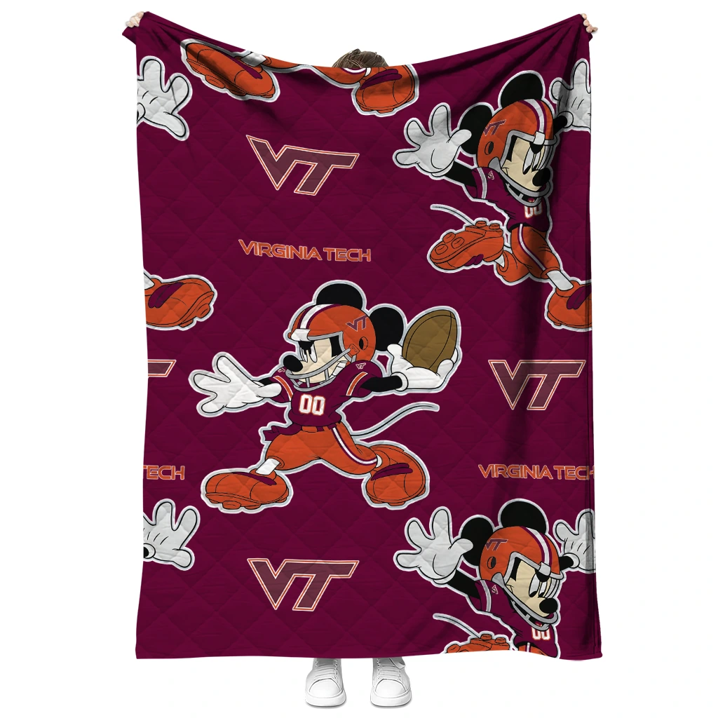 Customized Virginia Tech Hokies Mickey Football Maroon Quilt Blanket