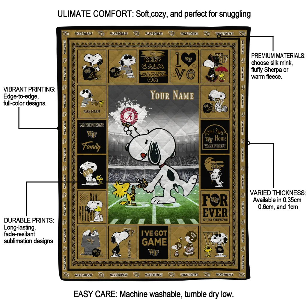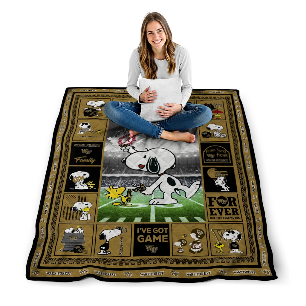 The Customized Wake Forest Demon Deacons Snoopy Coach Gold Quilt Blanket is more than a blanket—it’s everyday comfort, thoughtfully made. Crafted from premium quilting fabric with a soft microfiber touch, it offers a smooth hand-feel and lasting coziness. Layered quilting with a cotton-filled core provides adaptable warmth across seasons while maintaining a clean, tailored look on your bed or sofa.