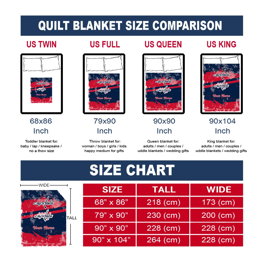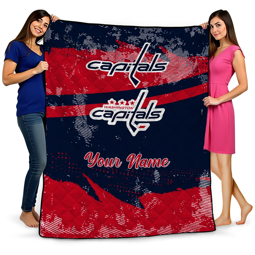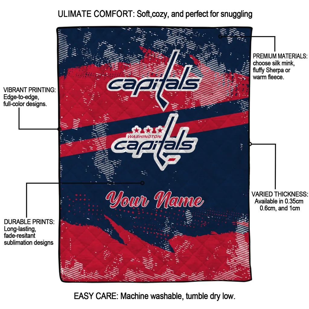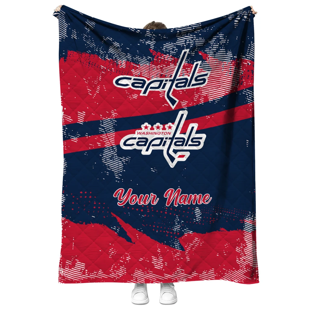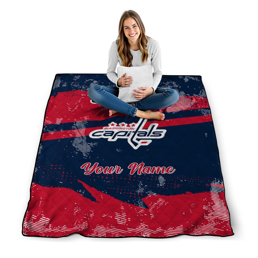 Wrap yourself in warmth and pride with the Customized Washington Capitals Brushstroke Layers Blue Quilt Blanket from the Washington Capitals Blankets collection at Yes That Blanket. Made from 100% premium quilting-weight polyester blended with a touch of microfiber, this quilt offers a smooth, soft finish you’ll love. Choose between two quilting styles—Stipple or Diagonal—and enjoy the comfort of a cotton-filled layer inside that adds extra coziness for every season. The border is available in classic black or white, giving your design a clean, timeless edge.
