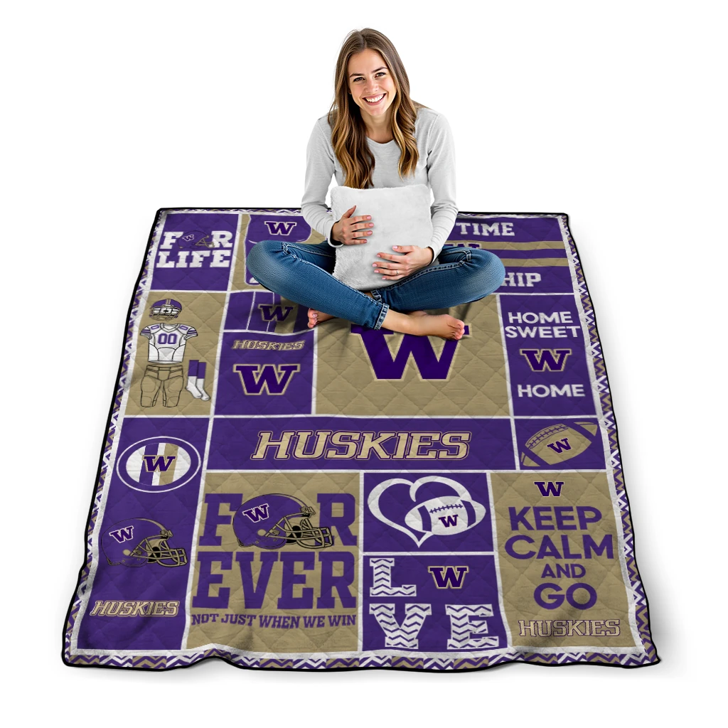 Customized Washington Huskies Helmet Passion Purple Quilt Blanket