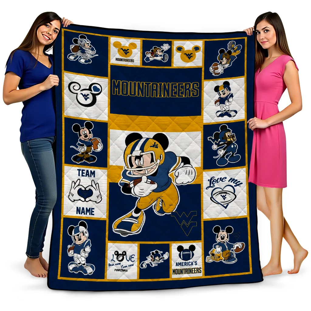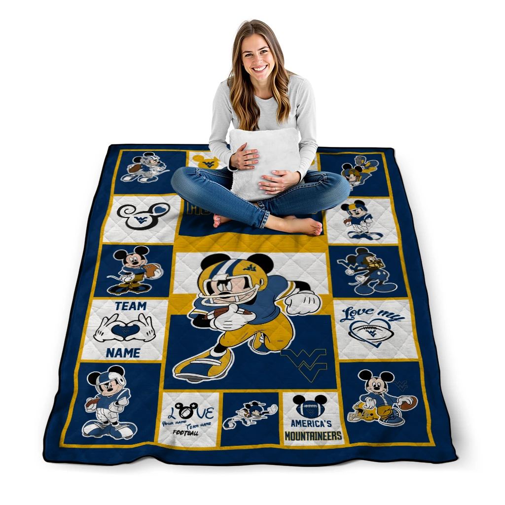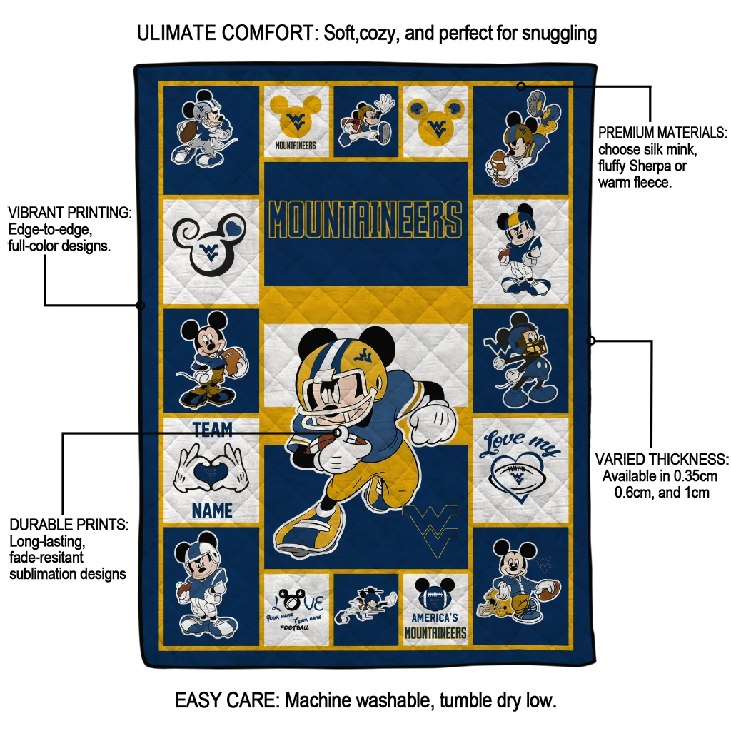 The Customized West Virginia Mountaineers Mickey Crimson Blue White Quilt Blanket is more than a blanket—it’s everyday comfort, thoughtfully made. Crafted from premium quilting fabric with a soft microfiber touch, it offers a smooth hand-feel and lasting coziness. Layered quilting with a cotton-filled core provides adaptable warmth across seasons while maintaining a clean, tailored look on your bed or sofa.