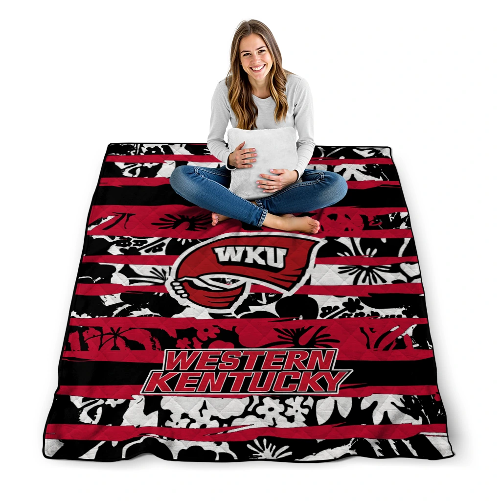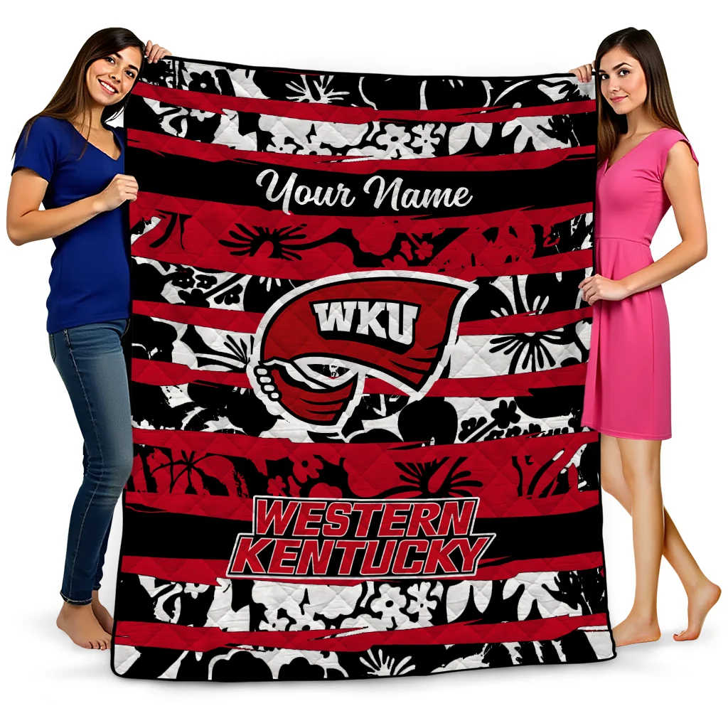 Customized Western Kentucky Hilltoppers Layered Florals Red White Quilt Blanket