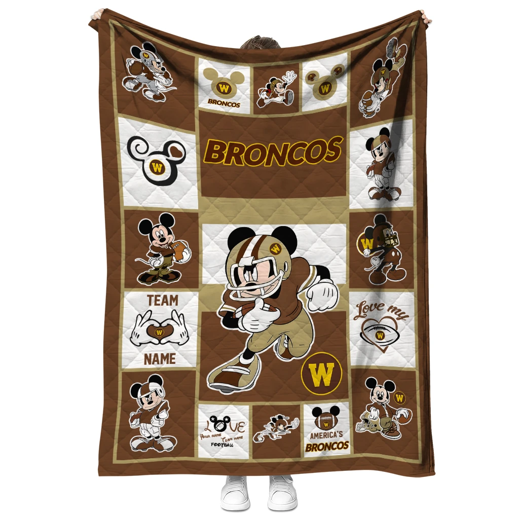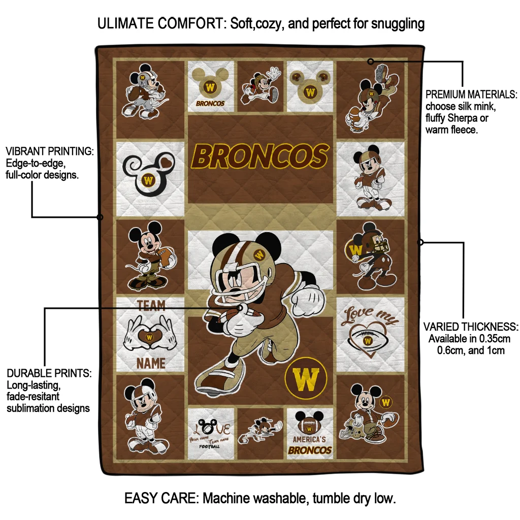 Wrap yourself in warmth and pride with the Customized Western Michigan Broncos Mickey Crimson Brown White Quilt Blanket from the Western Michigan Broncos Blankets collection at Yes That Blanket. Made from 100% premium quilting-weight polyester blended with a touch of microfiber, this quilt offers a smooth, soft finish you’ll love. Choose between two quilting styles—Stipple or Diagonal—and enjoy the comfort of a cotton-filled layer inside that adds extra coziness for every season. The border is available in classic black or white, giving your design a clean, timeless edge.