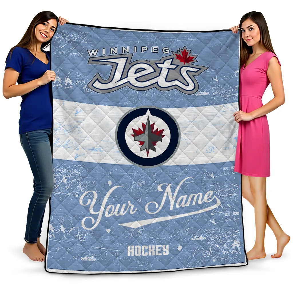 The Customized Winnipeg Jets Pinstripe Lines Blue White Quilt Blanket is more than a blanket—it’s everyday comfort, thoughtfully made. Crafted from premium quilting fabric with a soft microfiber touch, it offers a smooth hand-feel and lasting coziness. Layered quilting with a cotton-filled core provides adaptable warmth across seasons while maintaining a clean, tailored look on your bed or sofa.
