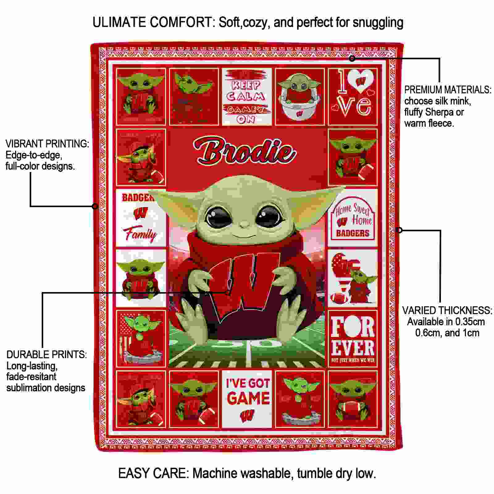 Without a doubt, the Customized Wisconsin Badgers Baby Yoda Red Blanket from Wisconsin Badgers Blankets collection is offering true fans a chance to showcase passion in a cool way. Personalize it with your favorite team’s logo or a meaningful name to make it uniquely yours. Isn’t that great? The full-color print ensures vibrant, edge-to-edge designs, bringing your sports enthusiasm to life!