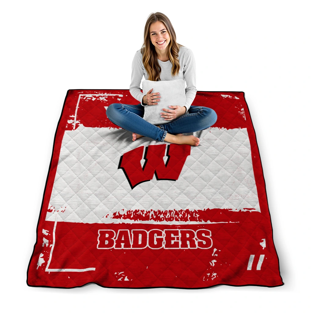 The Customized Wisconsin Badgers Grunge Patch Red White Quilt Blanket is more than a blanket—it’s everyday comfort, thoughtfully made. Crafted from premium quilting fabric with a soft microfiber touch, it offers a smooth hand-feel and lasting coziness. Layered quilting with a cotton-filled core provides adaptable warmth across seasons while maintaining a clean, tailored look on your bed or sofa.
