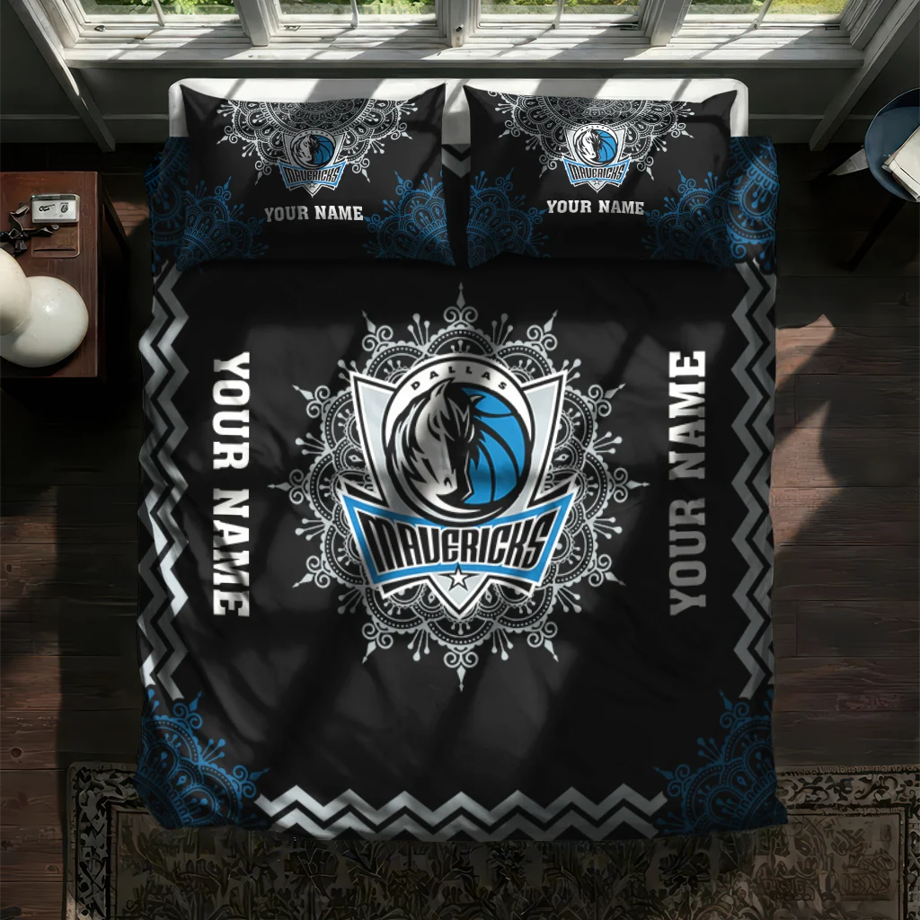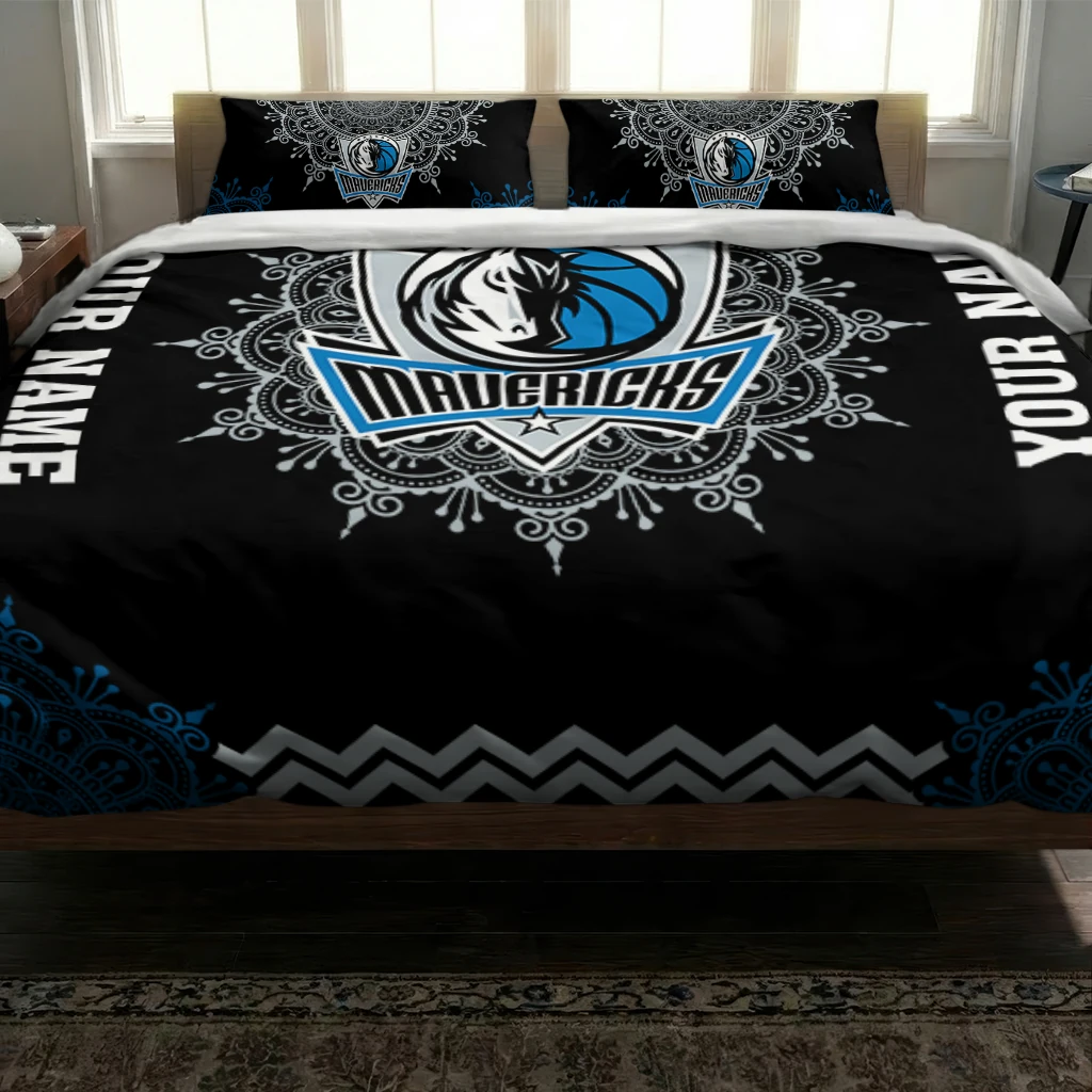 Dallas Mavericks Bedding Set – Customized Mandala Lacework Black Blue