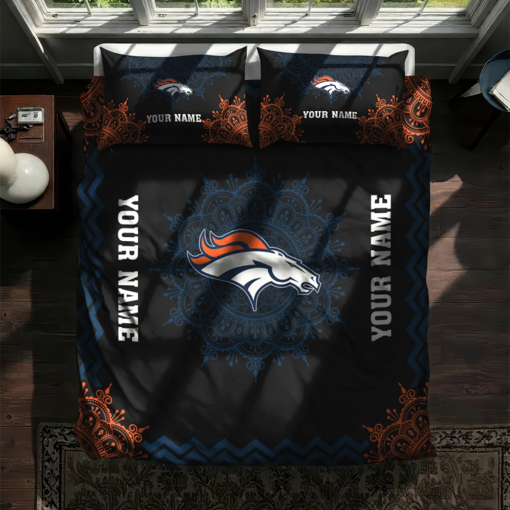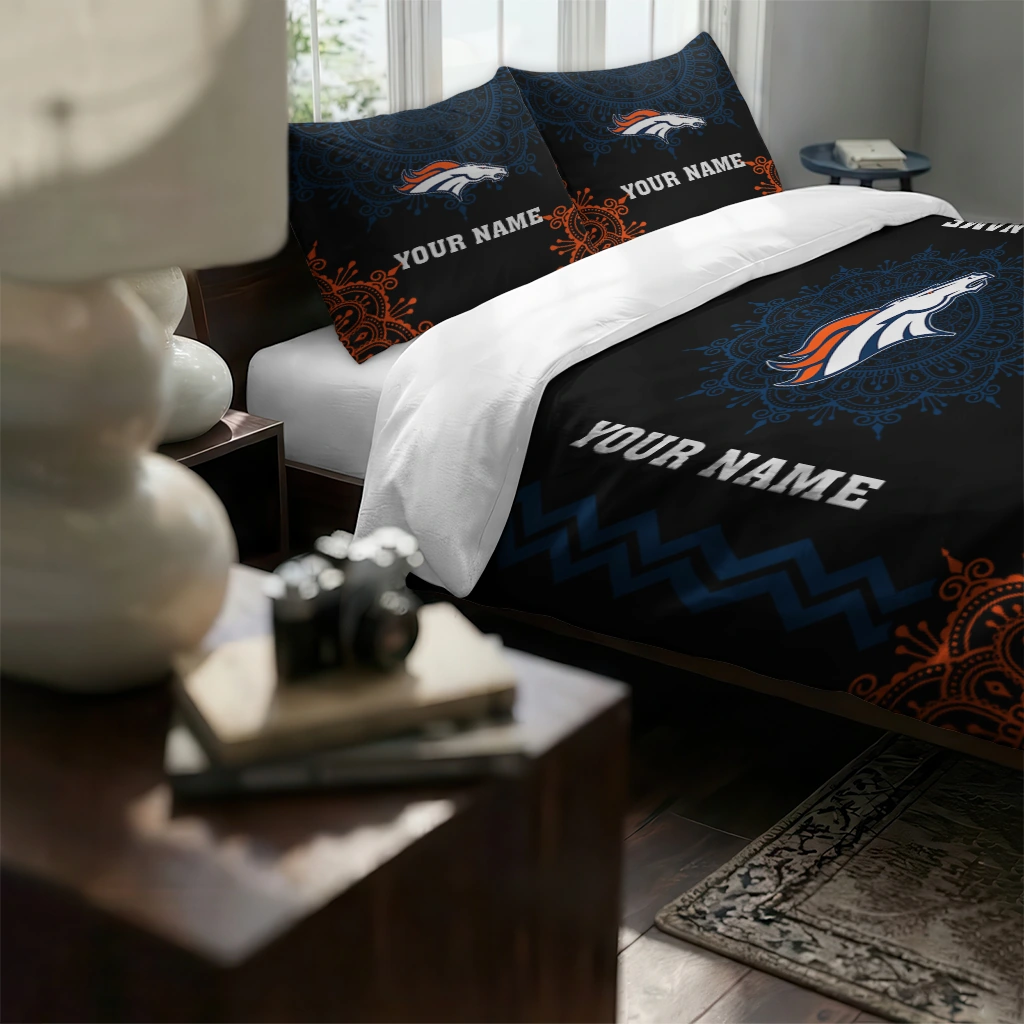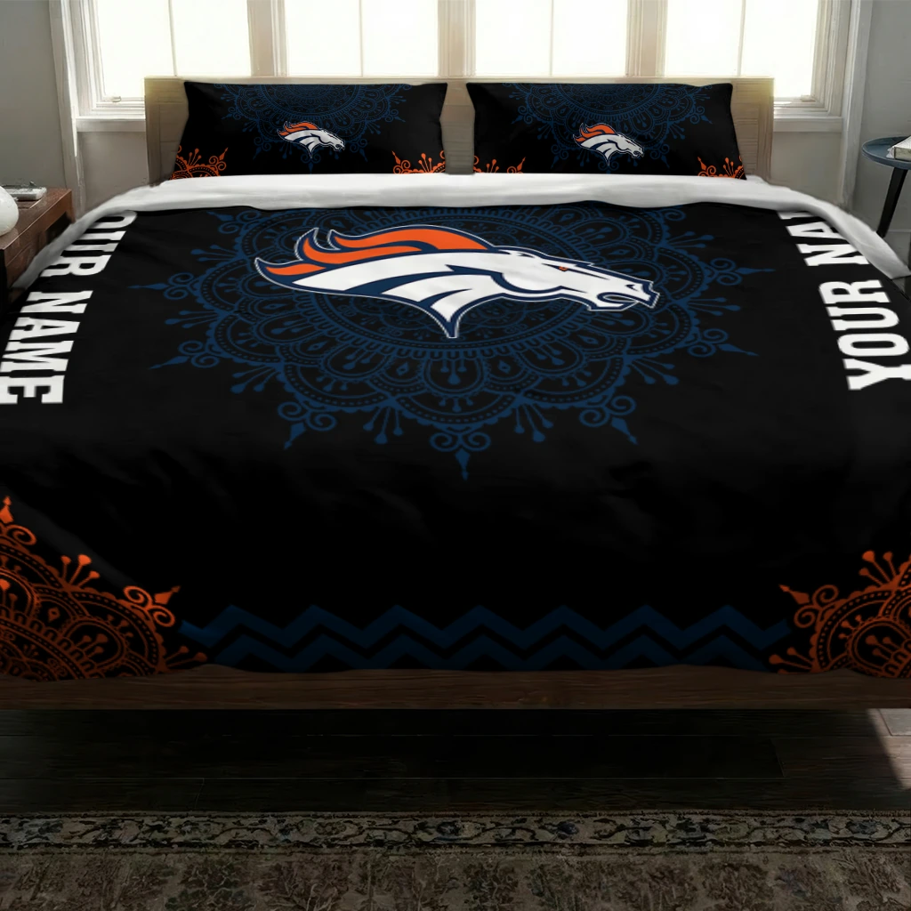 Denver Broncos Bedding Set – Personalized Mandala Lacework Black Orange