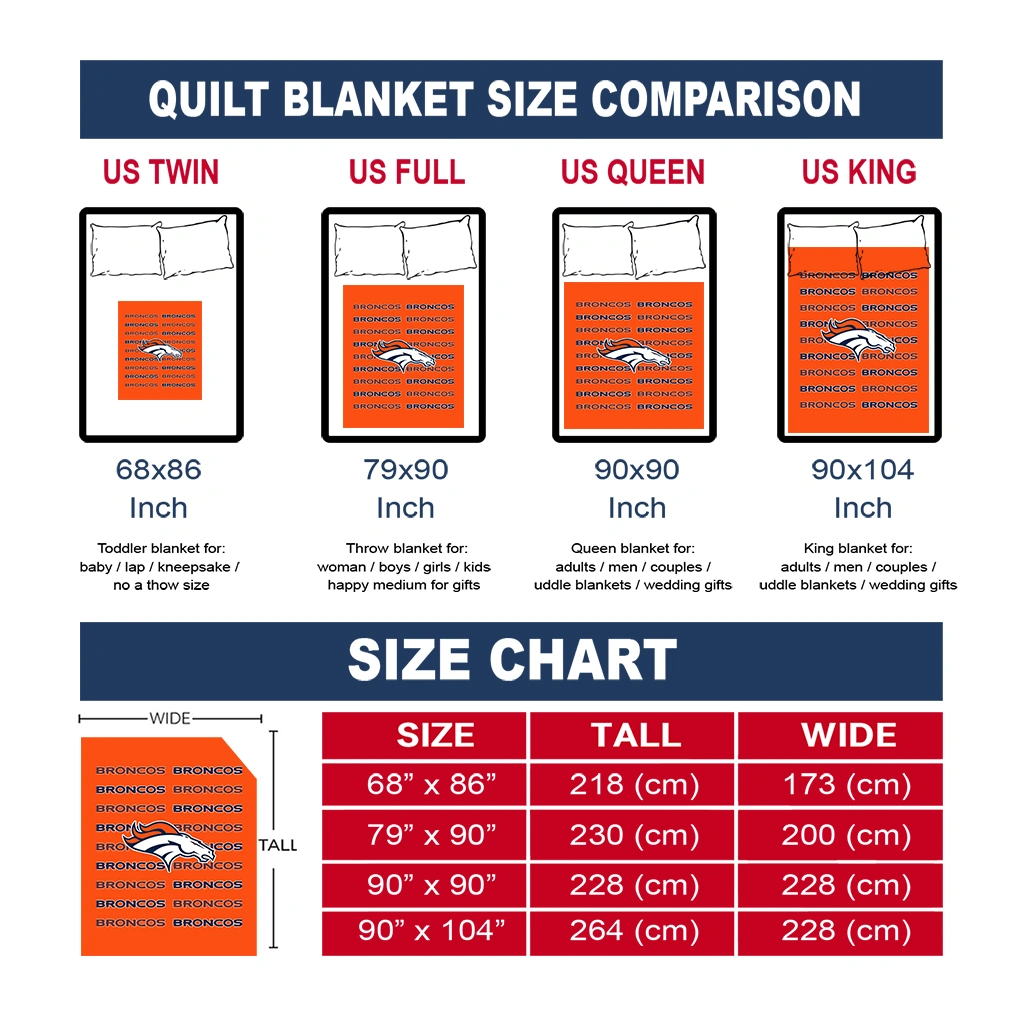 Wrap yourself in warmth and pride with the Denver Broncos Bold Red Orange Quilt Blanket from the Denver Broncos Blankets collection at Yes That Blanket. Made from 100% premium quilting-weight polyester blended with a touch of microfiber, this quilt offers a smooth, soft finish you’ll love. Choose between two quilting styles—Stipple or Diagonal—and enjoy the comfort of a cotton-filled layer inside that adds extra coziness for every season. The border is available in classic black or white, giving your design a clean, timeless edge.