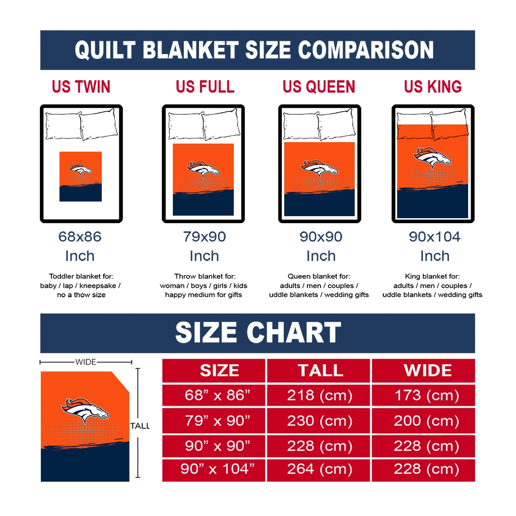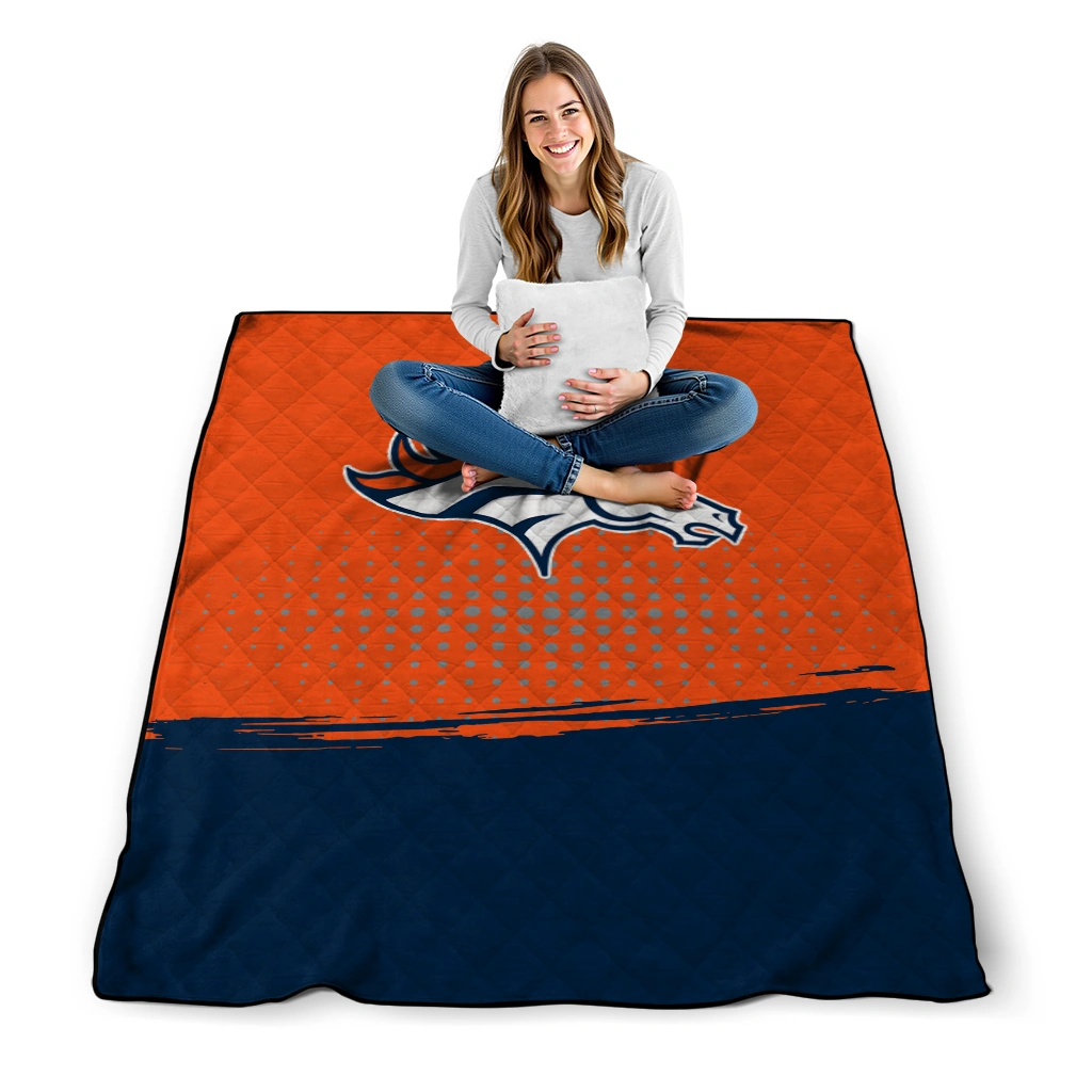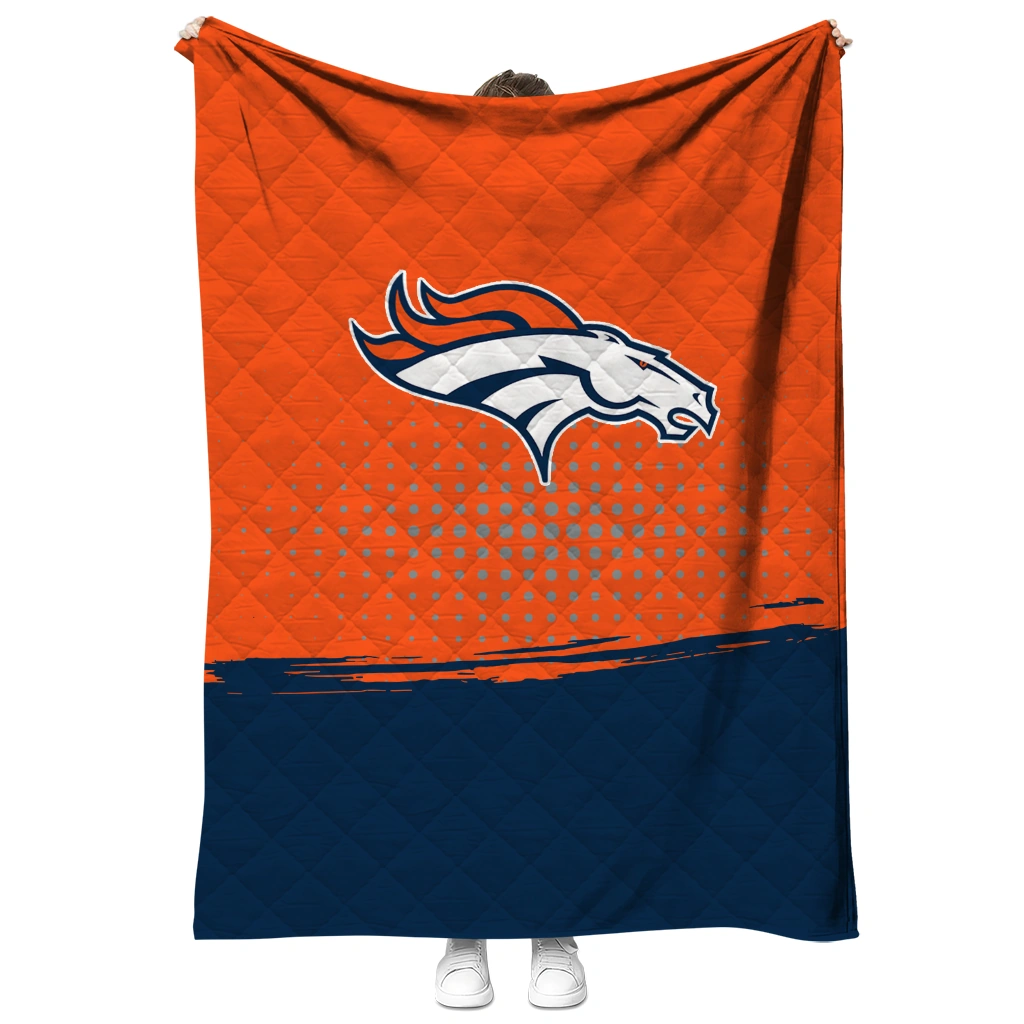 Wrap yourself in warmth and pride with the Denver Broncos Dot Illusion Orange Quilt Blanket from the Denver Broncos Blankets collection at Yes That Blanket. Made from 100% premium quilting-weight polyester blended with a touch of microfiber, this quilt offers a smooth, soft finish you’ll love. Choose between two quilting styles—Stipple or Diagonal—and enjoy the comfort of a cotton-filled layer inside that adds extra coziness for every season. The border is available in classic black or white, giving your design a clean, timeless edge.