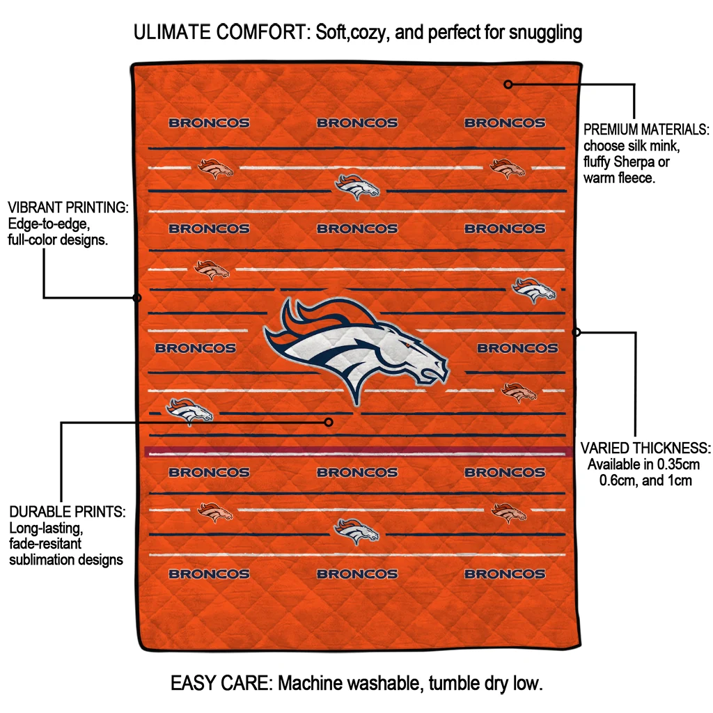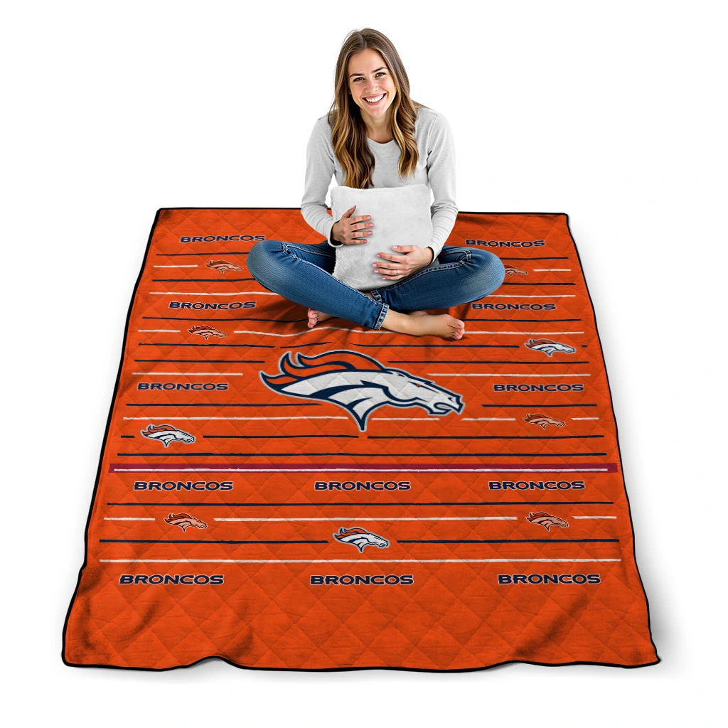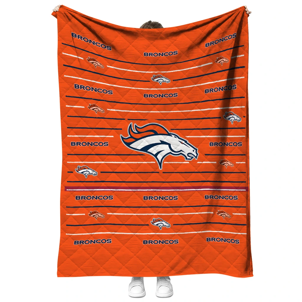 Wrap yourself in warmth and pride with the Denver Broncos Handdrawn Stripes Orange Quilt Blanket from the Denver Broncos Blankets collection at Yes That Blanket. Made from 100% premium quilting-weight polyester blended with a touch of microfiber, this quilt offers a smooth, soft finish you’ll love. Choose between two quilting styles—Stipple or Diagonal—and enjoy the comfort of a cotton-filled layer inside that adds extra coziness for every season. The border is available in classic black or white, giving your design a clean, timeless edge.