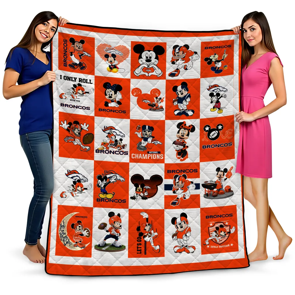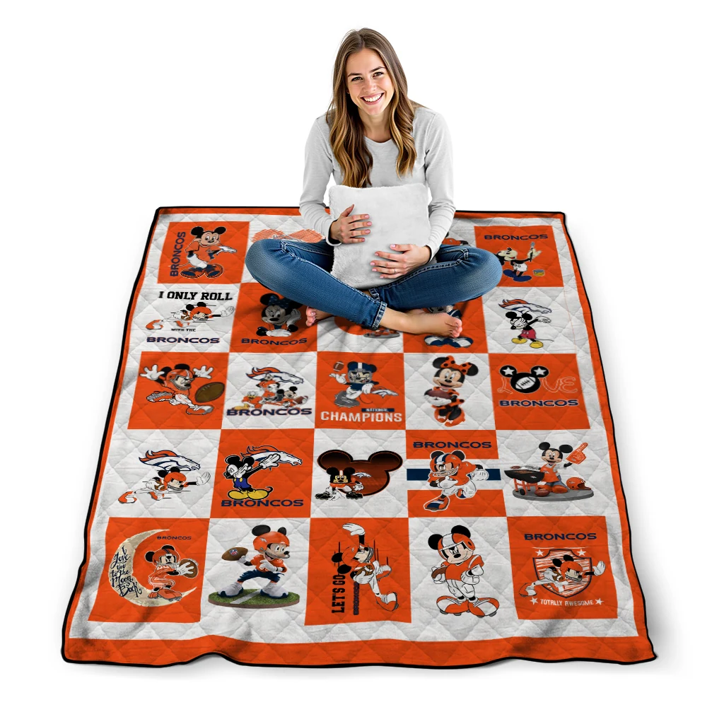 Denver Broncos Mickey Pattern Orange White Quilt Blanket