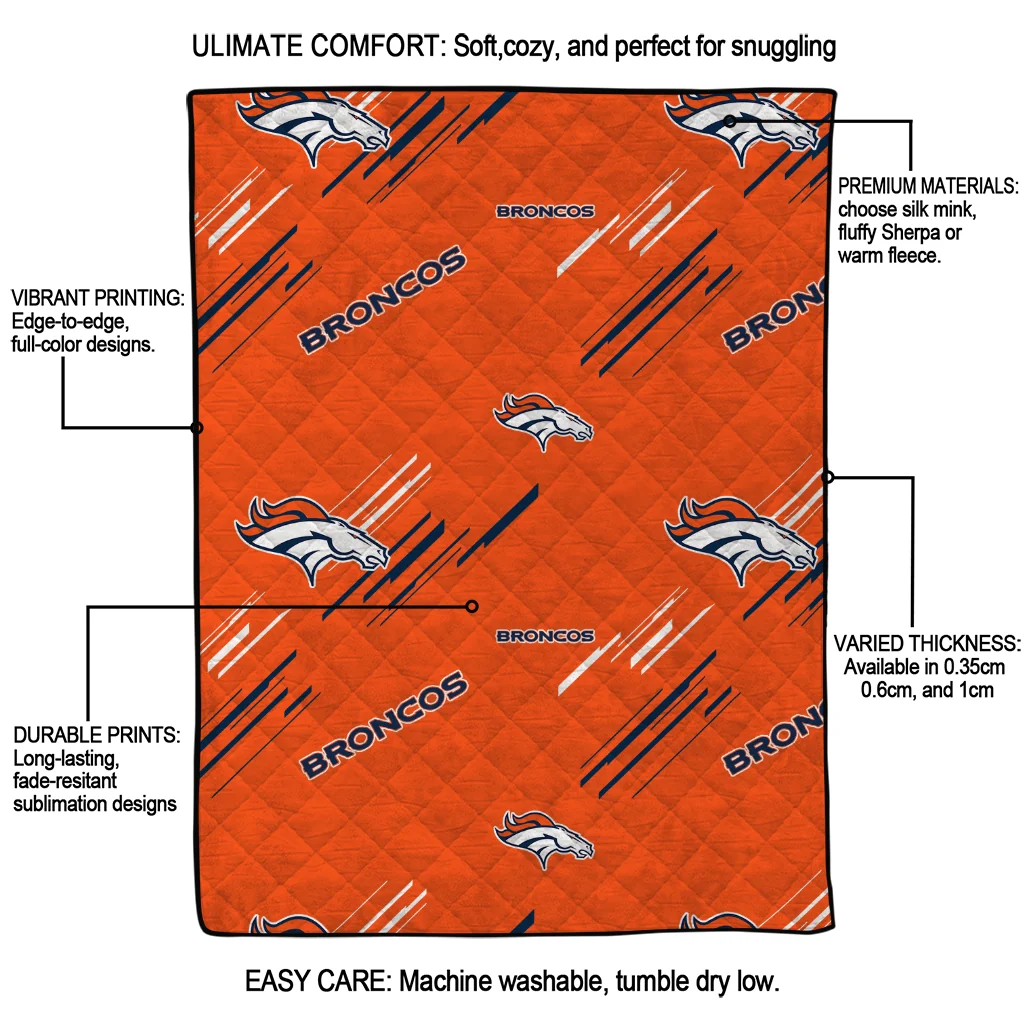 Wrap yourself in warmth and pride with the Denver Broncos Sketch Lines Orange Quilt Blanket from the Denver Broncos Blankets collection at Yes That Blanket. Made from 100% premium quilting-weight polyester blended with a touch of microfiber, this quilt offers a smooth, soft finish you’ll love. Choose between two quilting styles—Stipple or Diagonal—and enjoy the comfort of a cotton-filled layer inside that adds extra coziness for every season. The border is available in classic black or white, giving your design a clean, timeless edge.