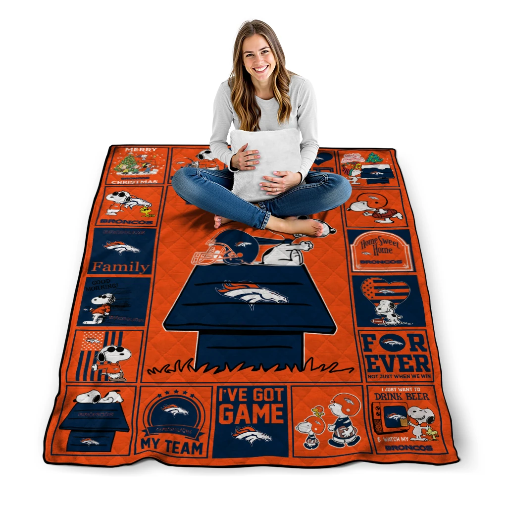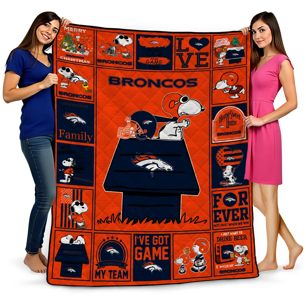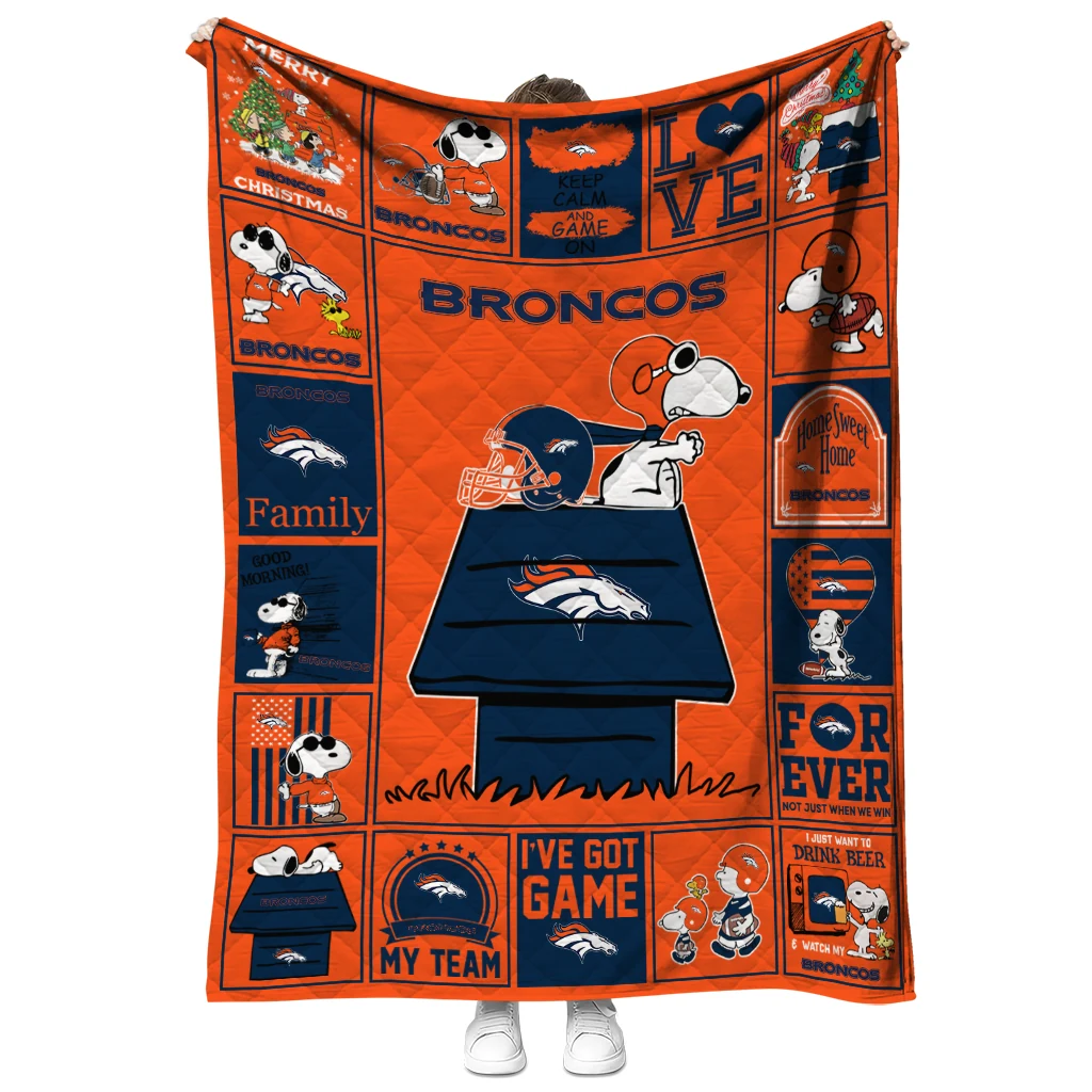 Wrap yourself in warmth and pride with the Denver Broncos Snoopy Love Orange Quilt Blanket from the Denver Broncos Blankets collection at Yes That Blanket. Made from 100% premium quilting-weight polyester blended with a touch of microfiber, this quilt offers a smooth, soft finish you’ll love. Choose between two quilting styles—Stipple or Diagonal—and enjoy the comfort of a cotton-filled layer inside that adds extra coziness for every season. The border is available in classic black or white, giving your design a clean, timeless edge.