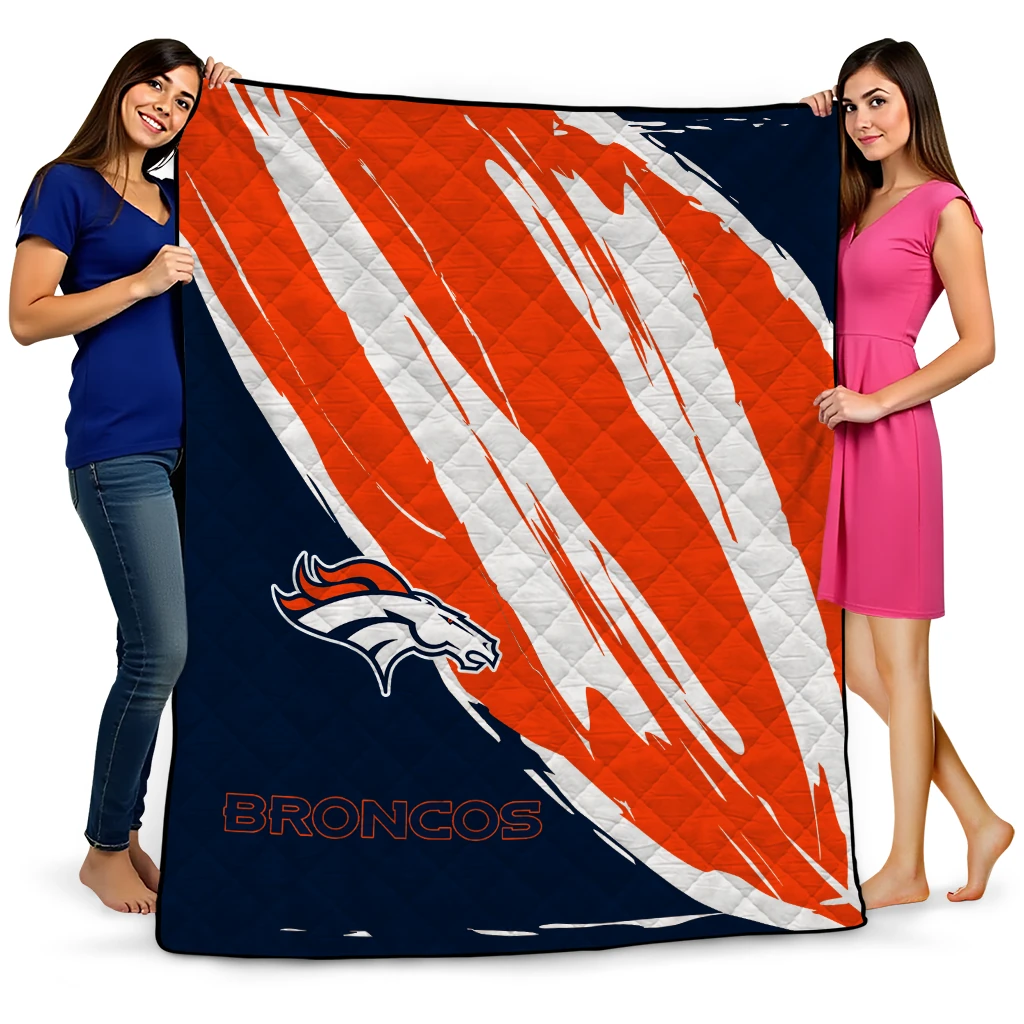 Denver Broncos Stroke Art Orange White Quilt Blanket