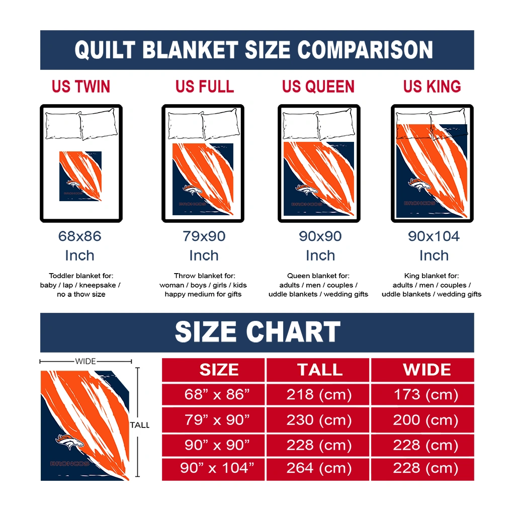 Wrap yourself in warmth and pride with the Denver Broncos Stroke Art Orange White Quilt Blanket from the Denver Broncos Blankets collection at Yes That Blanket. Made from 100% premium quilting-weight polyester blended with a touch of microfiber, this quilt offers a smooth, soft finish you’ll love. Choose between two quilting styles—Stipple or Diagonal—and enjoy the comfort of a cotton-filled layer inside that adds extra coziness for every season. The border is available in classic black or white, giving your design a clean, timeless edge.