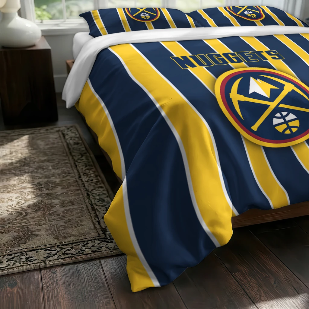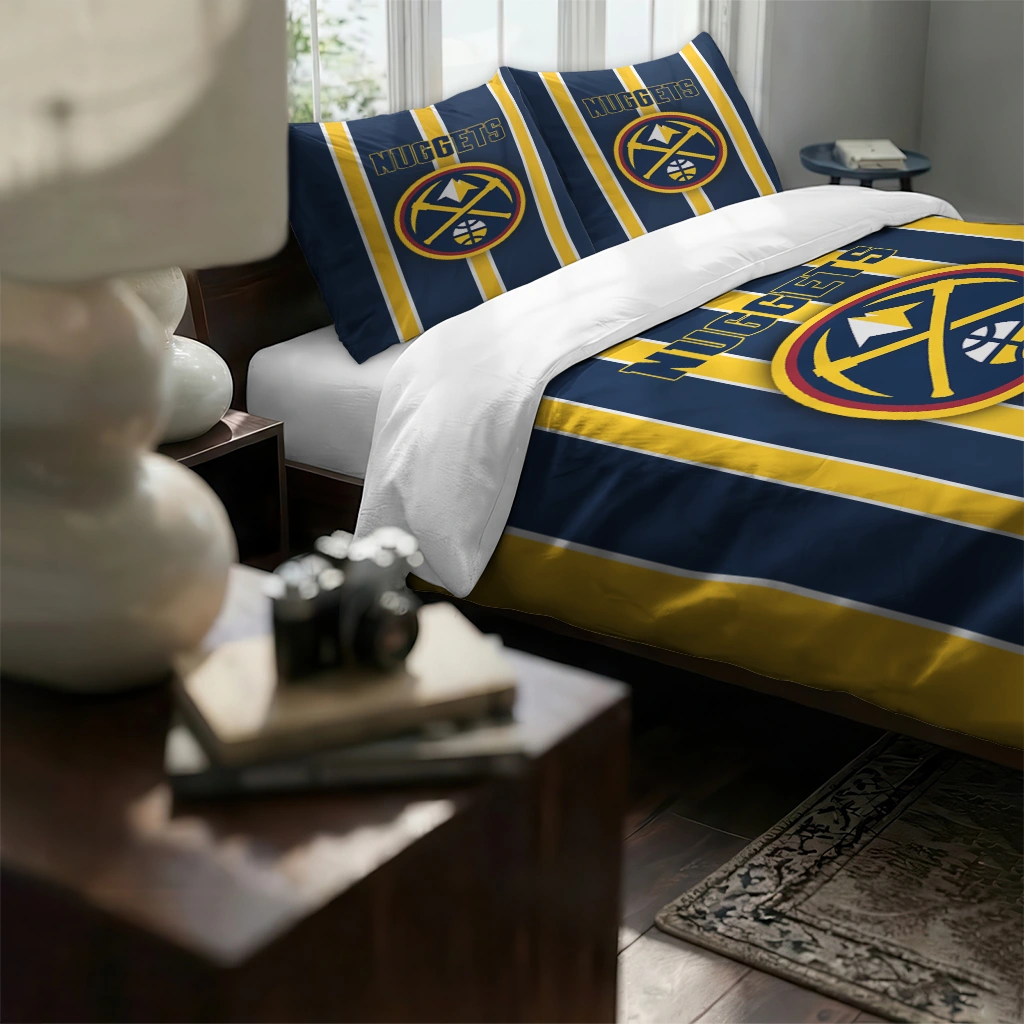 The Denver Nuggets Bedding Set – Stripe Style Blue Yellow makes your room feel complete, warm, and overflowing with team pride. Designed for true fans, this bedding set from the Denver Nuggets Bedding Sets collection at Yes That Blanket turns your sanctuary into a cozy retreat where sport style meets ultimate relaxation. Experience the perfect blend of comfort and passion every night with a finish so soft, you’ll never want to leave.