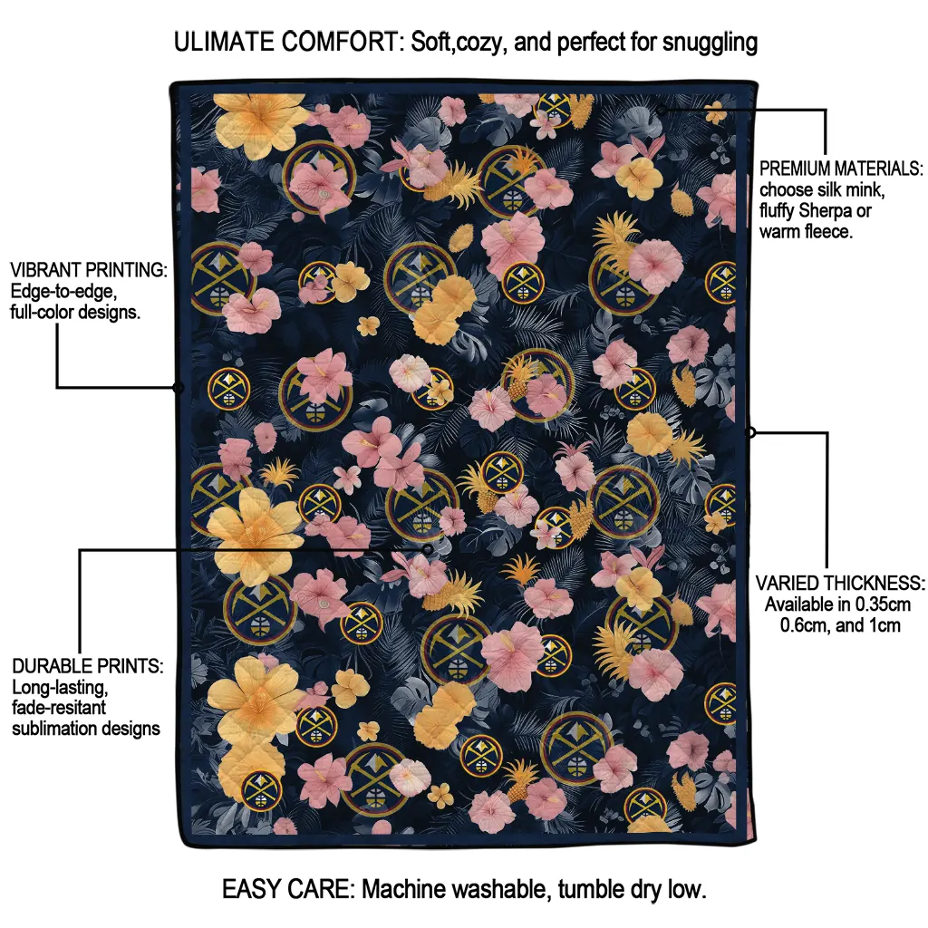 Wrap yourself in warmth and pride with the Denver Nuggets Hibiscus Foliage Blue Quilt Blanket from the Denver Nuggets Blankets collection at Yes That Blanket. Made from 100% premium quilting-weight polyester blended with a touch of microfiber, this quilt offers a smooth, soft finish you’ll love. Choose between two quilting styles—Stipple or Diagonal—and enjoy the comfort of a cotton-filled layer inside that adds extra coziness for every season. The border is available in classic black or white, giving your design a clean, timeless edge.