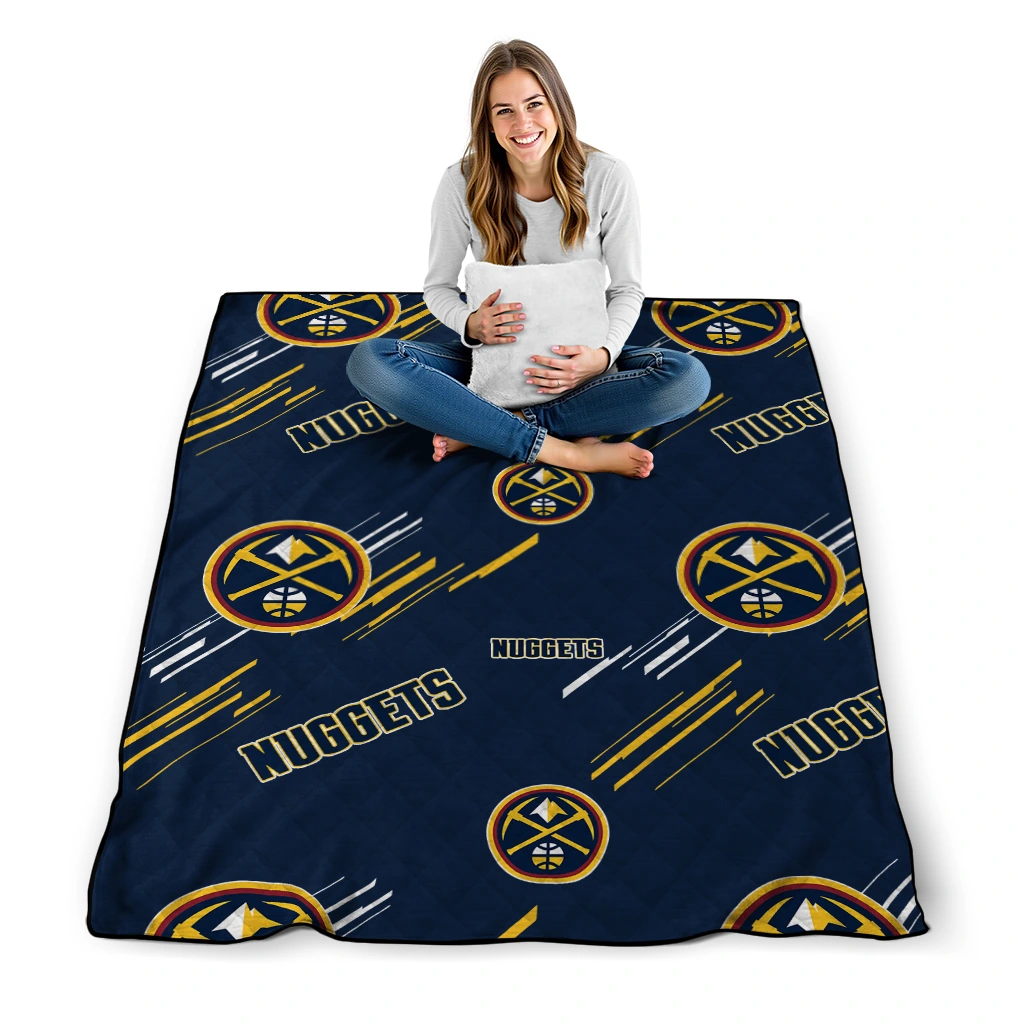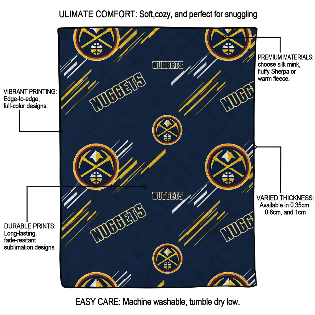 Denver Nuggets Sketch Lines Blue Quilt Blanket