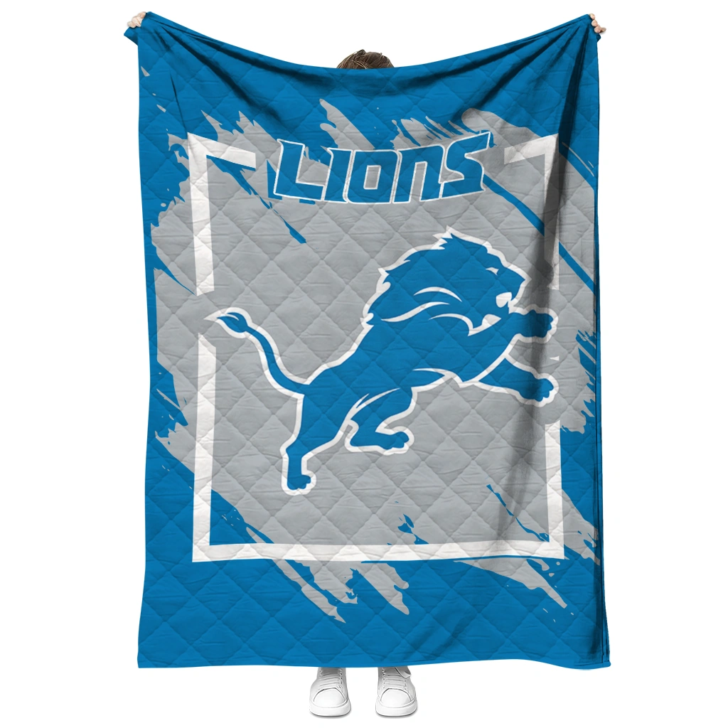 Wrap yourself in warmth and pride with the Detroit Lions Block Border Blue Quilt Blanket from the Detroit Lions Blankets collection at Yes That Blanket. Made from 100% premium quilting-weight polyester blended with a touch of microfiber, this quilt offers a smooth, soft finish you’ll love. Choose between two quilting styles—Stipple or Diagonal—and enjoy the comfort of a cotton-filled layer inside that adds extra coziness for every season. The border is available in classic black or white, giving your design a clean, timeless edge.