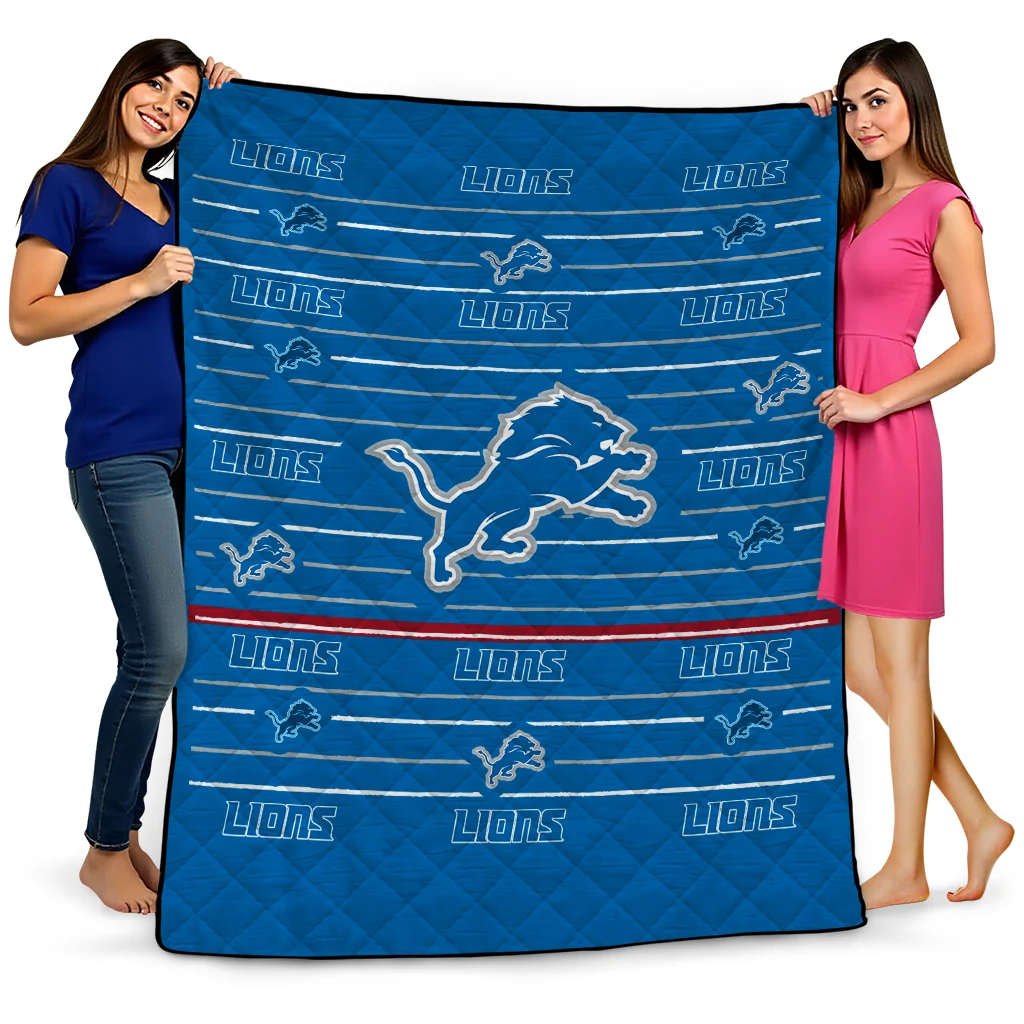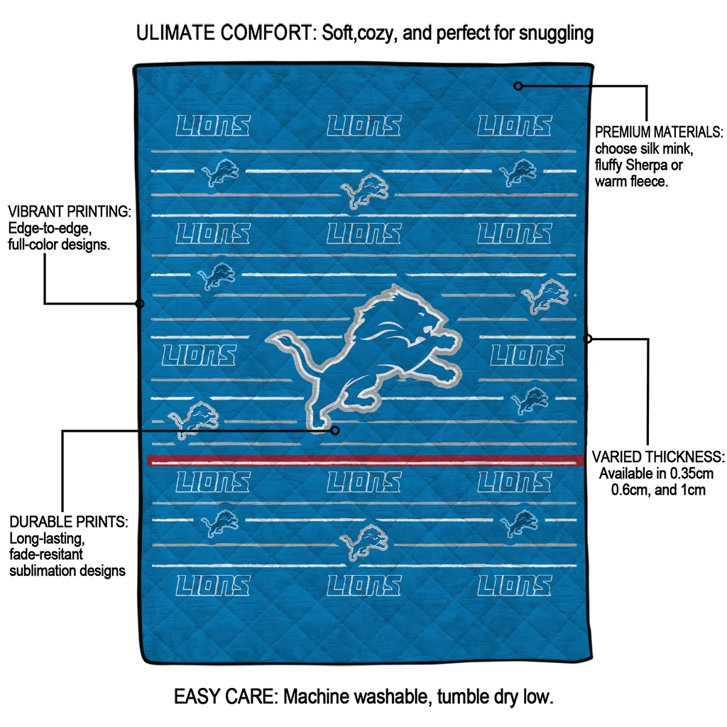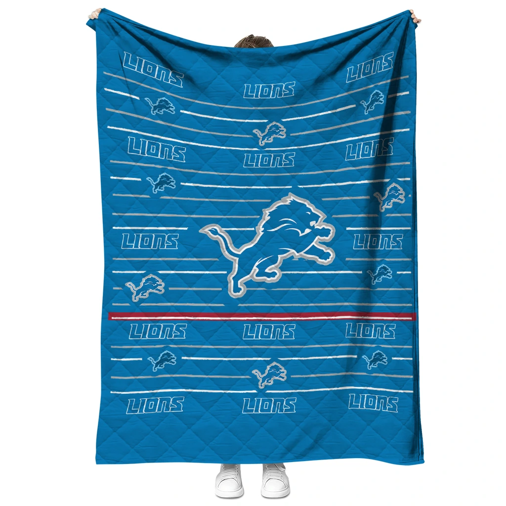 Wrap yourself in warmth and pride with the Detroit Lions Handdrawn Stripes Blue Quilt Blanket from the Detroit Lions Blankets collection at Yes That Blanket. Made from 100% premium quilting-weight polyester blended with a touch of microfiber, this quilt offers a smooth, soft finish you’ll love. Choose between two quilting styles—Stipple or Diagonal—and enjoy the comfort of a cotton-filled layer inside that adds extra coziness for every season. The border is available in classic black or white, giving your design a clean, timeless edge.