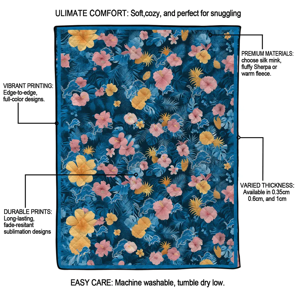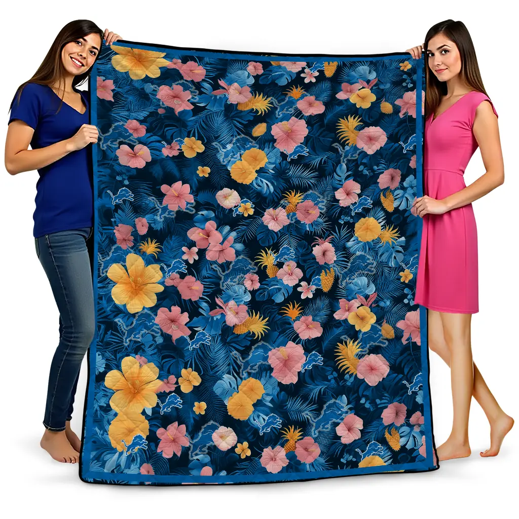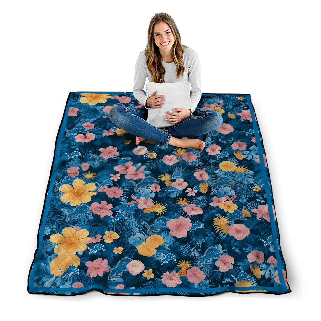 The Detroit Lions Hibiscus Foliage Blue Quilt Blanket is more than a blanket—it’s everyday comfort, thoughtfully made. Crafted from premium quilting fabric with a soft microfiber touch, it offers a smooth hand-feel and lasting coziness. Layered quilting with a cotton-filled core provides adaptable warmth across seasons while maintaining a clean, tailored look on your bed or sofa.