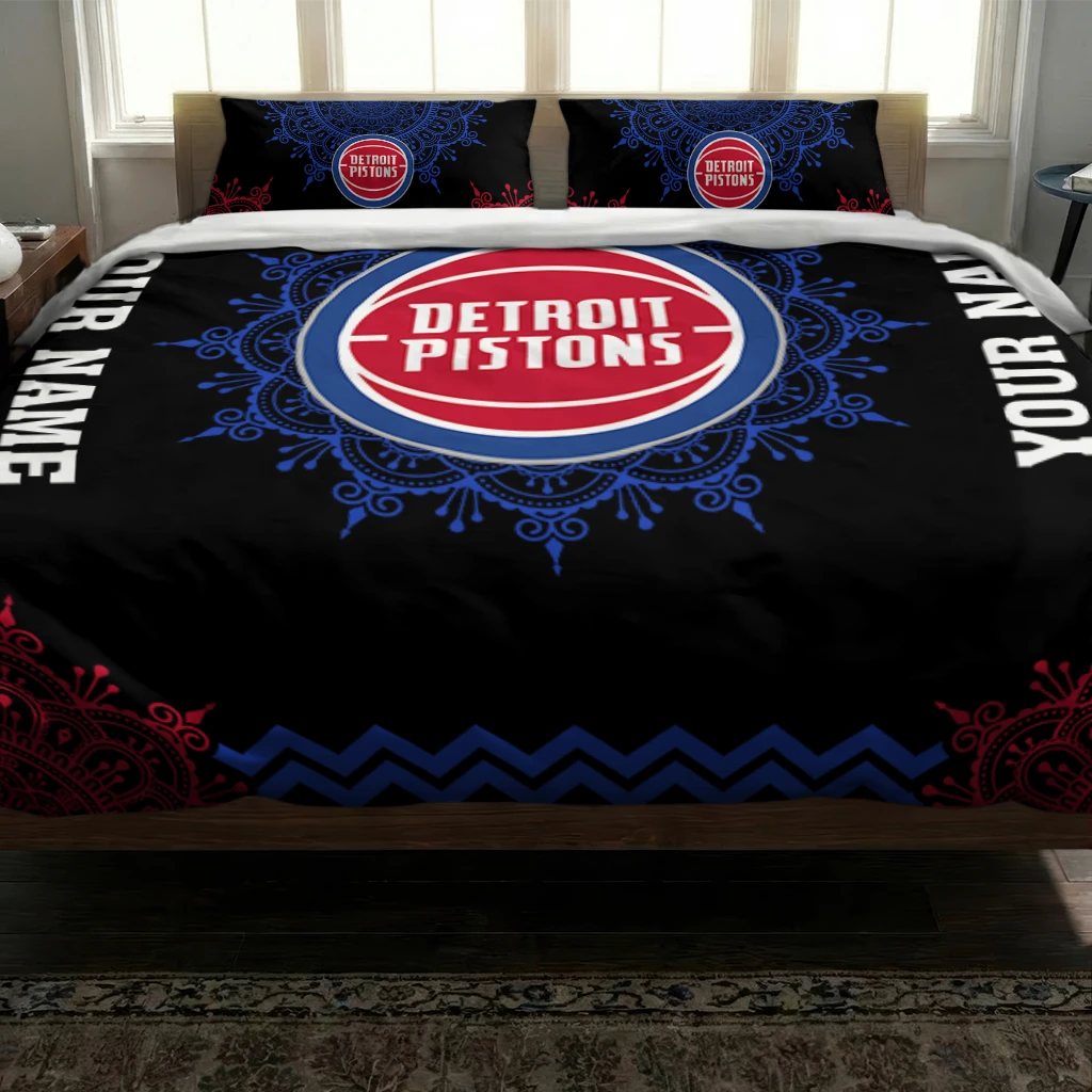 Detroit Pistons Bedding Set – Custom Mandala Lacework Black Blue