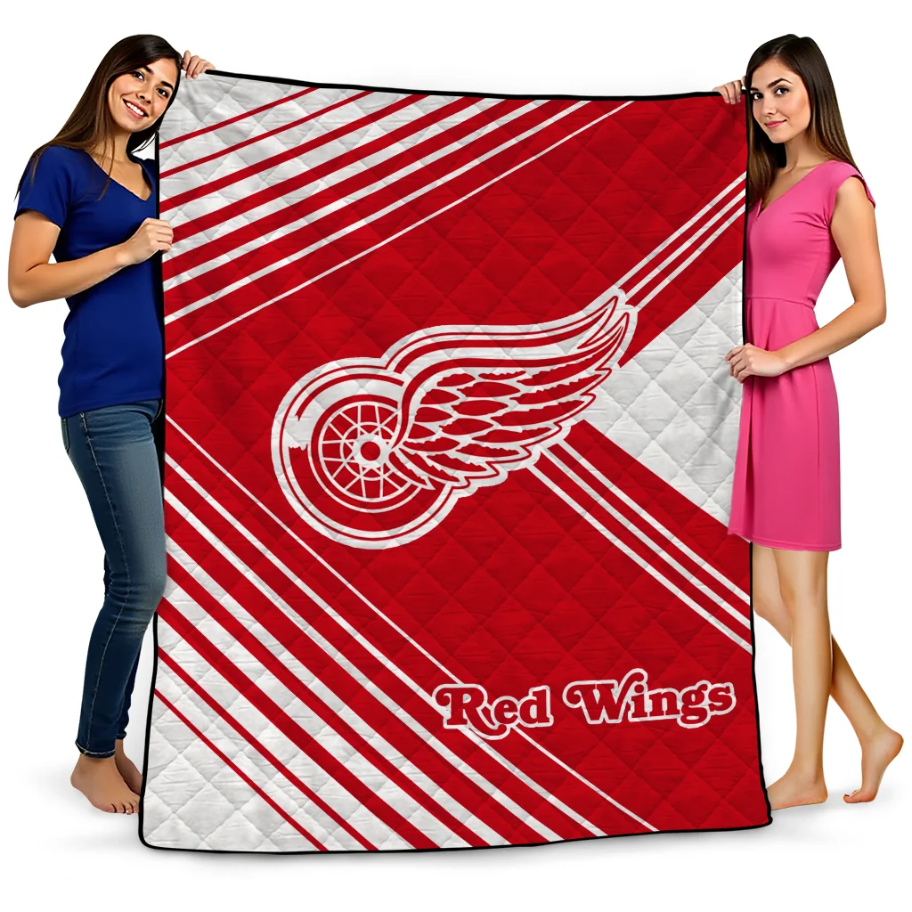 Wrap yourself in warmth and pride with the Detroit Red Wings Arrow Layers Red Quilt Blanket from the Detroit Red Wings Blankets collection at Yes That Blanket. Made from 100% premium quilting-weight polyester blended with a touch of microfiber, this quilt offers a smooth, soft finish you’ll love. Choose between two quilting styles—Stipple or Diagonal—and enjoy the comfort of a cotton-filled layer inside that adds extra coziness for every season. The border is available in classic black or white, giving your design a clean, timeless edge.