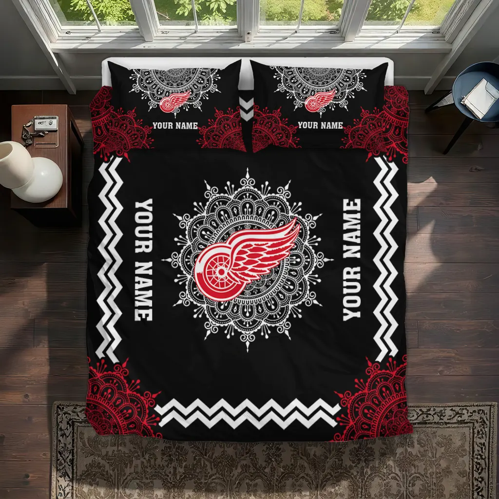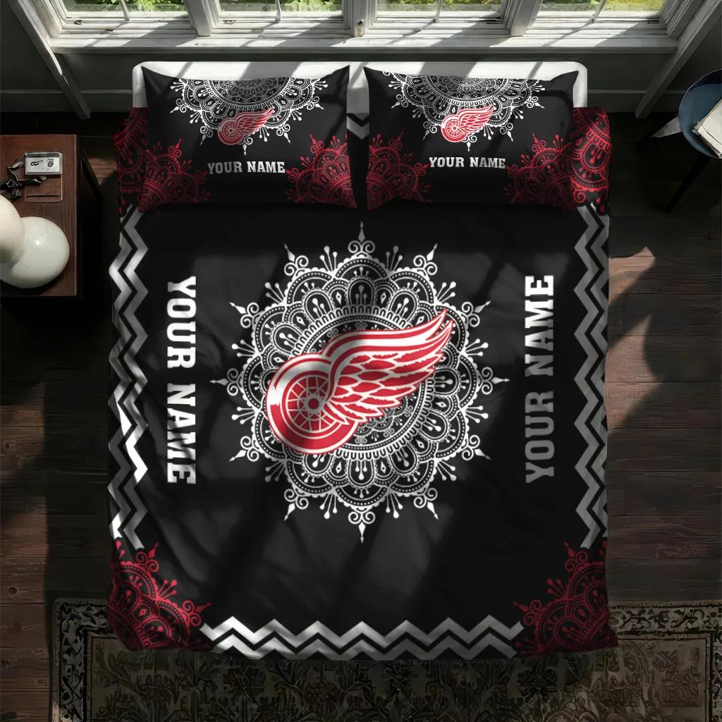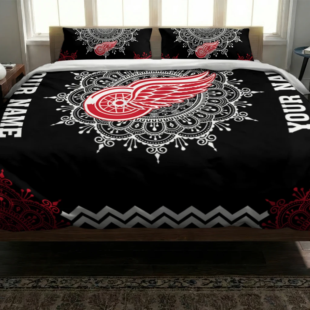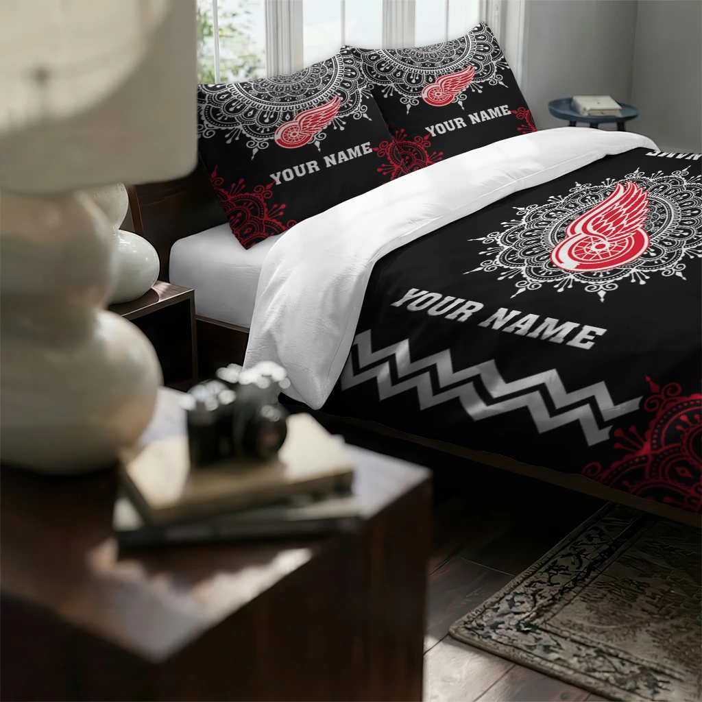 Detroit Red Wings Bedding Set – Personalized Mandala Lacework Black Red
