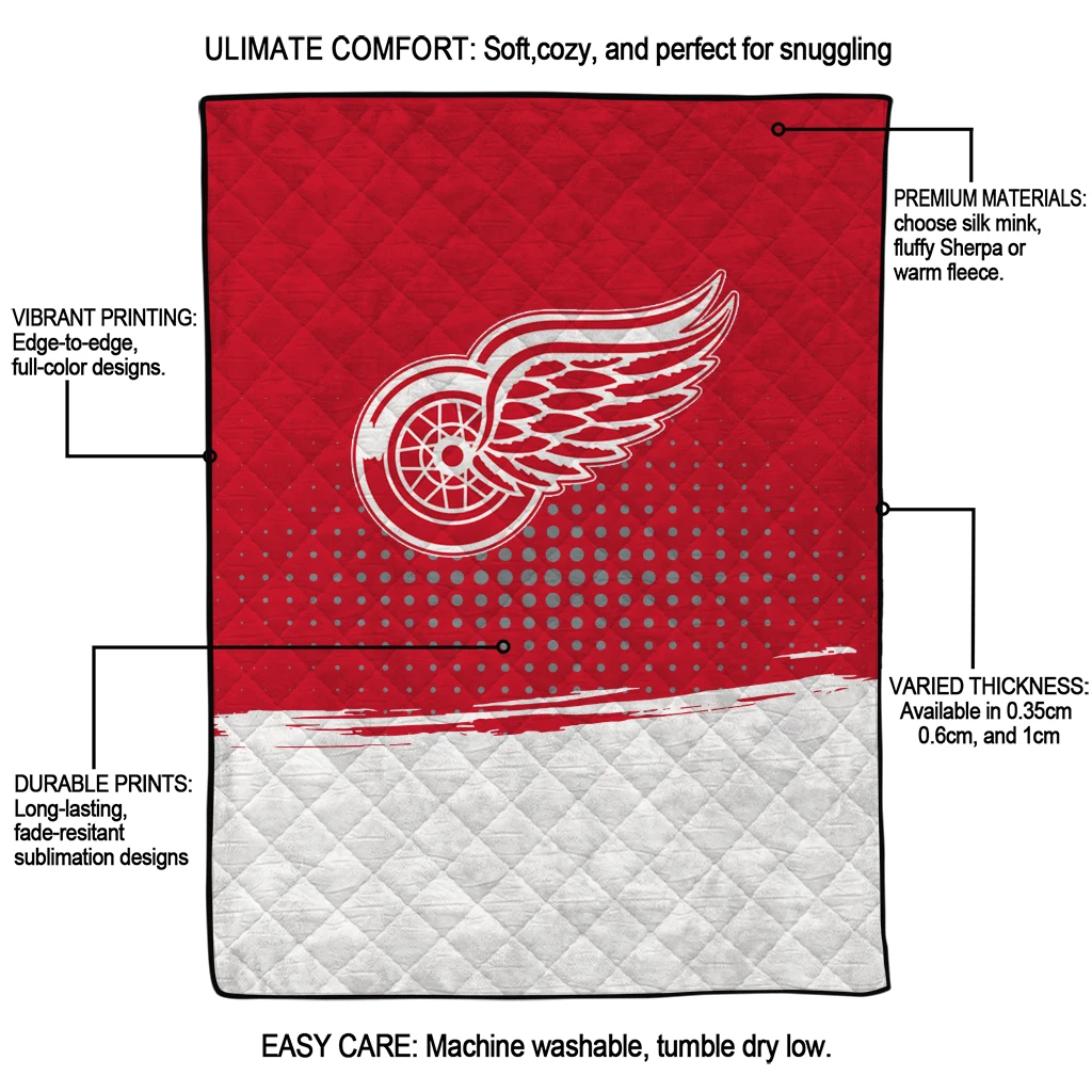 Wrap yourself in warmth and pride with the Detroit Red Wings Dot Illusion Red Quilt Blanket from the Detroit Red Wings Blankets collection at Yes That Blanket. Made from 100% premium quilting-weight polyester blended with a touch of microfiber, this quilt offers a smooth, soft finish you’ll love. Choose between two quilting styles—Stipple or Diagonal—and enjoy the comfort of a cotton-filled layer inside that adds extra coziness for every season. The border is available in classic black or white, giving your design a clean, timeless edge.