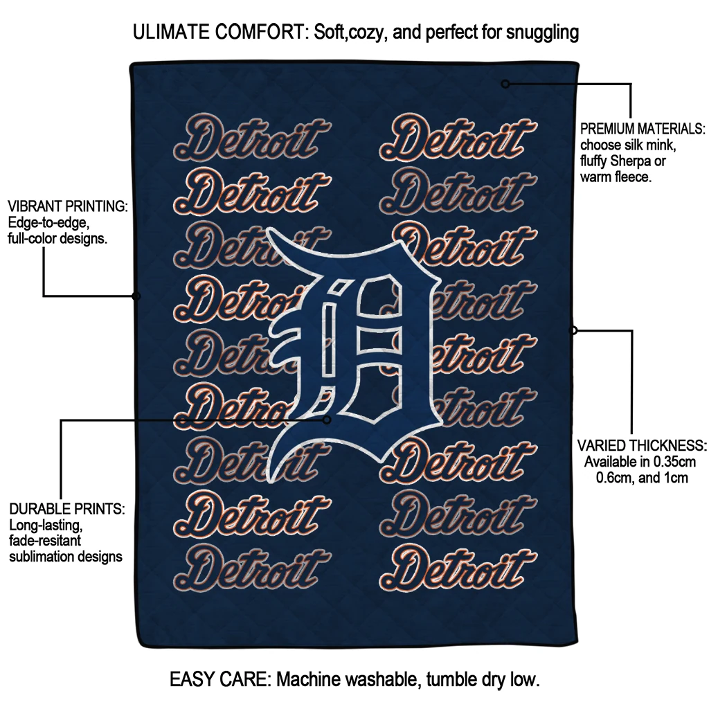 Wrap yourself in warmth and pride with the Detroit Tigers Bold Red Navy Quilt Blanket from the Detroit Tigers Blankets collection at Yes That Blanket. Made from 100% premium quilting-weight polyester blended with a touch of microfiber, this quilt offers a smooth, soft finish you’ll love. Choose between two quilting styles—Stipple or Diagonal—and enjoy the comfort of a cotton-filled layer inside that adds extra coziness for every season. The border is available in classic black or white, giving your design a clean, timeless edge.