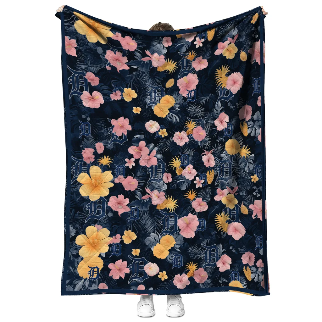 Wrap yourself in warmth and pride with the Detroit Tigers Hibiscus Foliage Navy Quilt Blanket from the Detroit Tigers Blankets collection at Yes That Blanket. Made from 100% premium quilting-weight polyester blended with a touch of microfiber, this quilt offers a smooth, soft finish you’ll love. Choose between two quilting styles—Stipple or Diagonal—and enjoy the comfort of a cotton-filled layer inside that adds extra coziness for every season. The border is available in classic black or white, giving your design a clean, timeless edge.