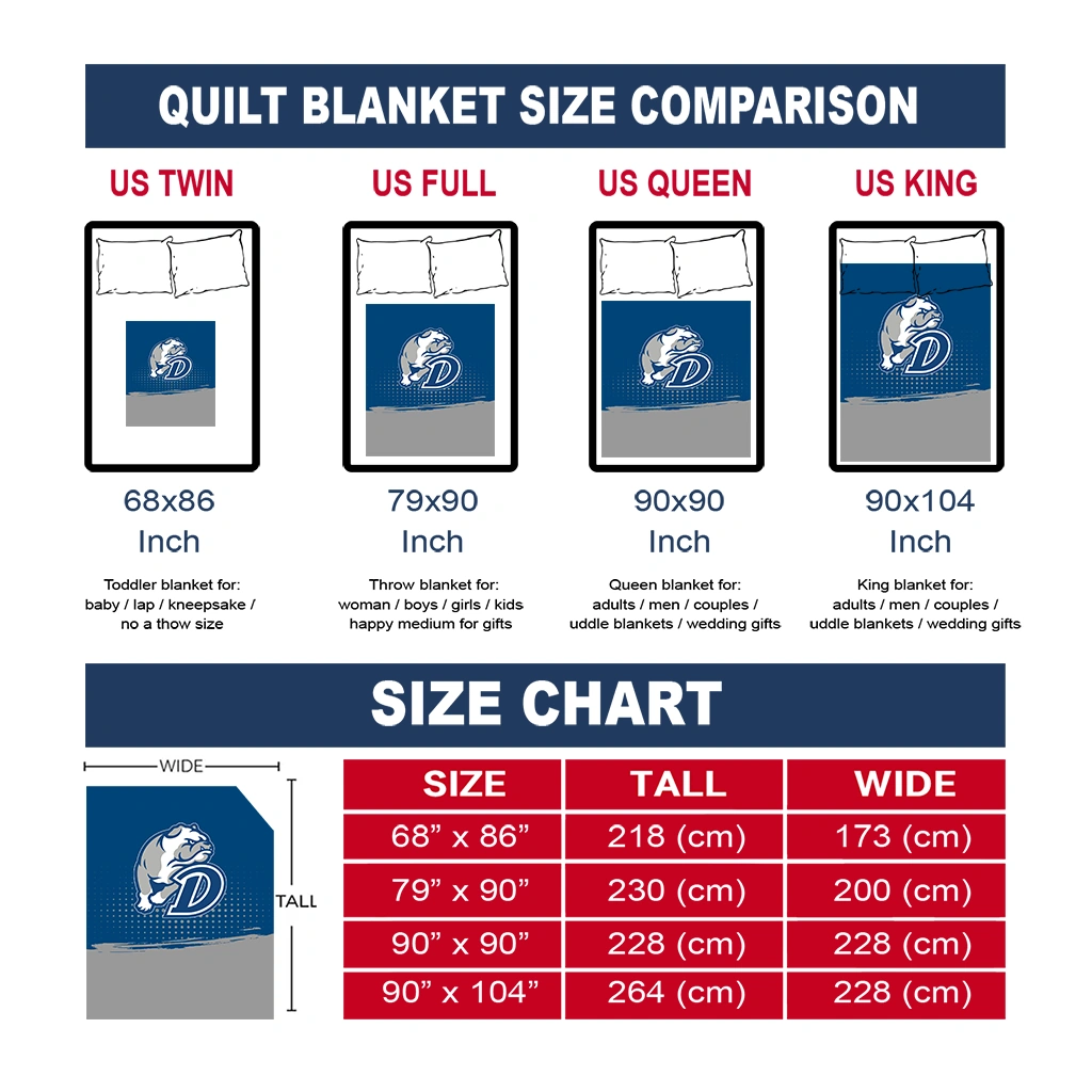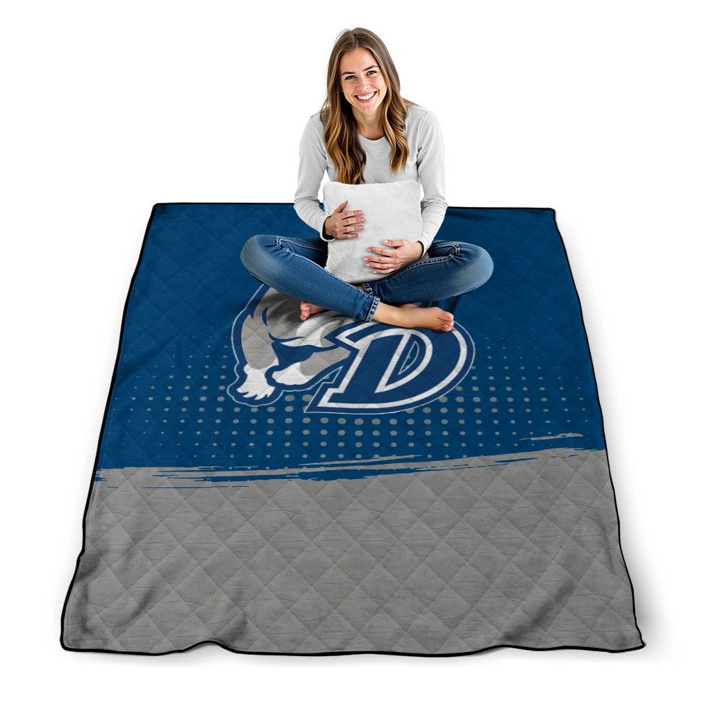 Wrap yourself in warmth and pride with the Drake Bulldogs Dot Illusion Blue Quilt Blanket from the Drake Bulldogs Blankets collection at Yes That Blanket. Made from 100% premium quilting-weight polyester blended with a touch of microfiber, this quilt offers a smooth, soft finish you’ll love. Choose between two quilting styles—Stipple or Diagonal—and enjoy the comfort of a cotton-filled layer inside that adds extra coziness for every season. The border is available in classic black or white, giving your design a clean, timeless edge.