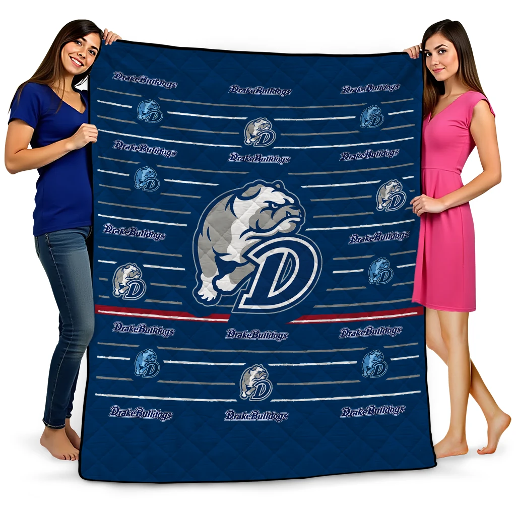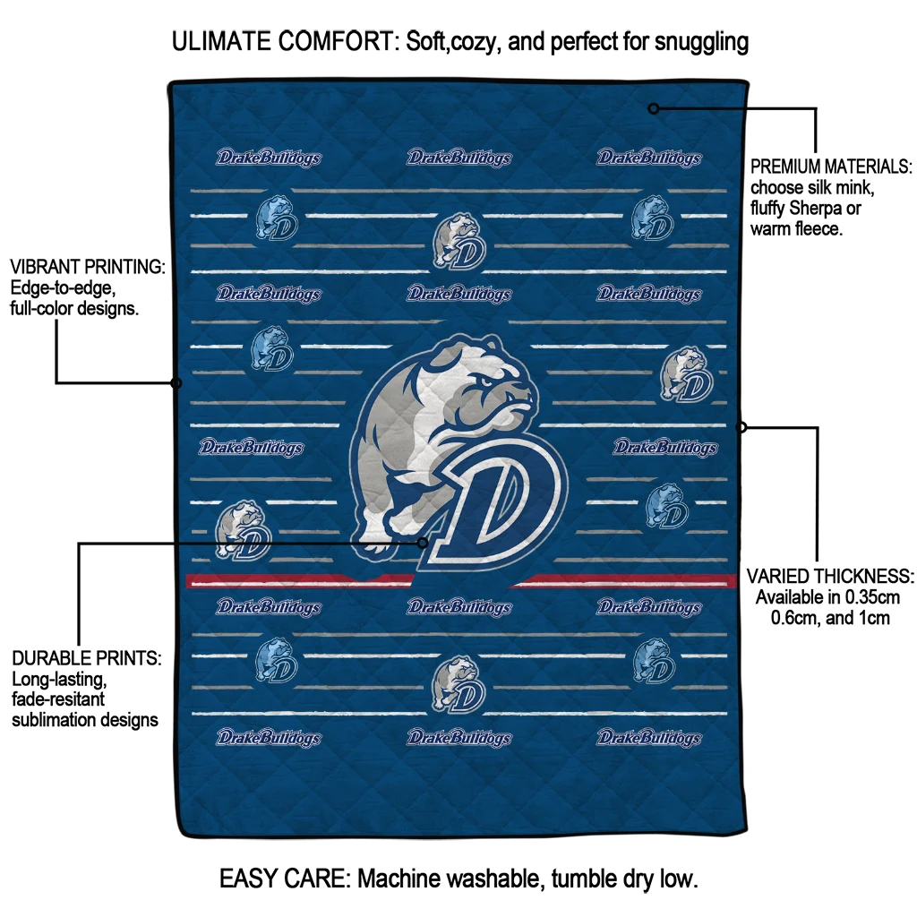 Wrap yourself in warmth and pride with the Drake Bulldogs Handdrawn Stripes Blue Quilt Blanket from the Drake Bulldogs Blankets collection at Yes That Blanket. Made from 100% premium quilting-weight polyester blended with a touch of microfiber, this quilt offers a smooth, soft finish you’ll love. Choose between two quilting styles—Stipple or Diagonal—and enjoy the comfort of a cotton-filled layer inside that adds extra coziness for every season. The border is available in classic black or white, giving your design a clean, timeless edge.