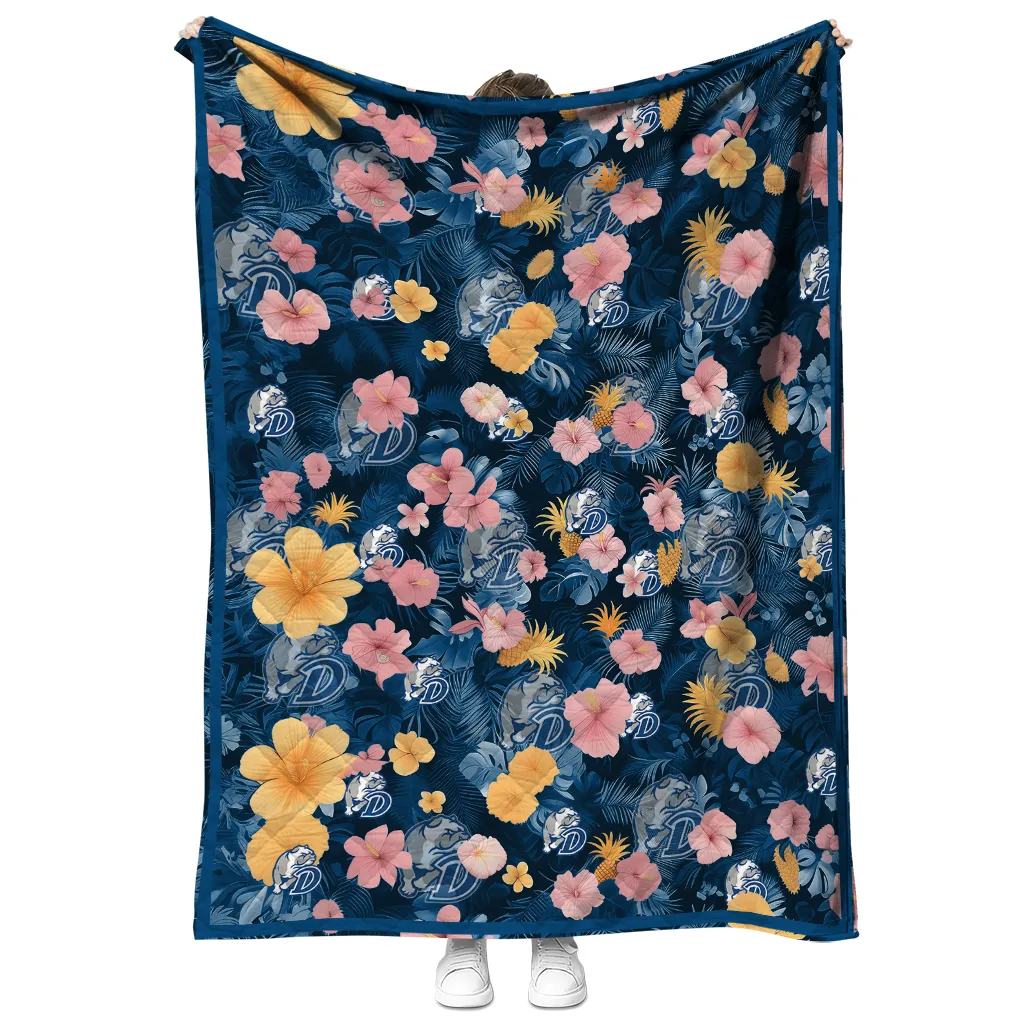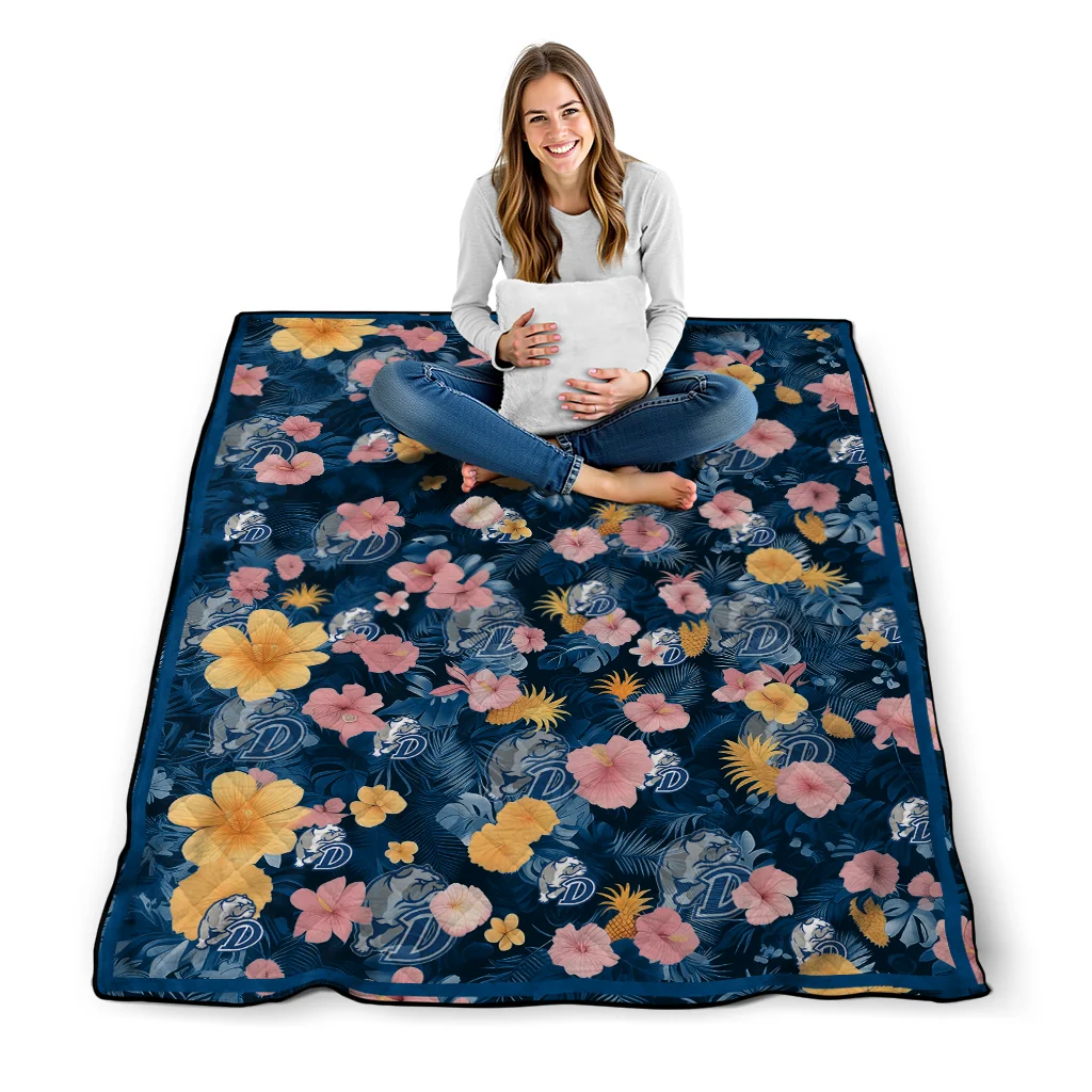 Wrap yourself in warmth and pride with the Drake Bulldogs Hibiscus Foliage Blue Quilt Blanket from the Drake Bulldogs Blankets collection at Yes That Blanket. Made from 100% premium quilting-weight polyester blended with a touch of microfiber, this quilt offers a smooth, soft finish you’ll love. Choose between two quilting styles—Stipple or Diagonal—and enjoy the comfort of a cotton-filled layer inside that adds extra coziness for every season. The border is available in classic black or white, giving your design a clean, timeless edge.