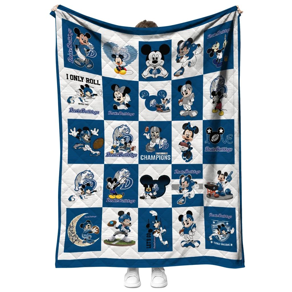 Drake Bulldogs Mickey Mouse Motif Blue White Quilt Blanket