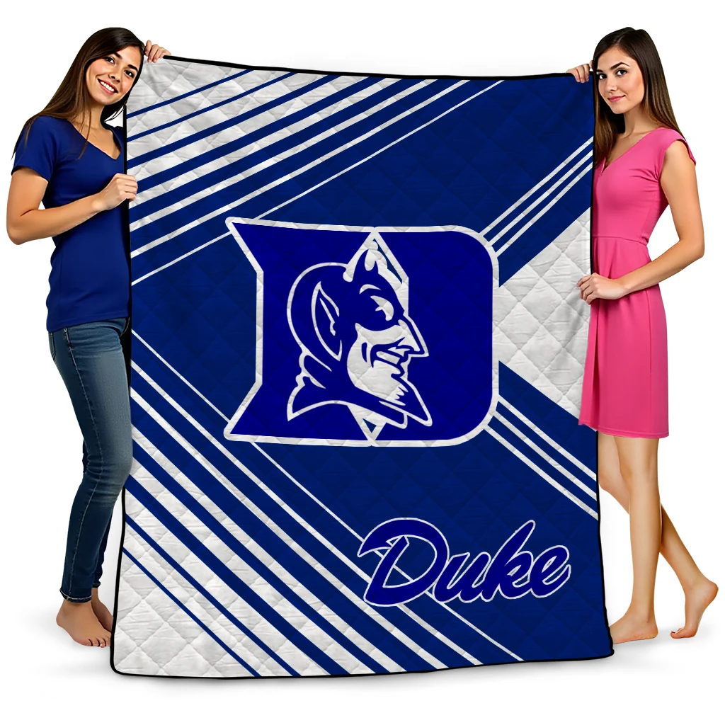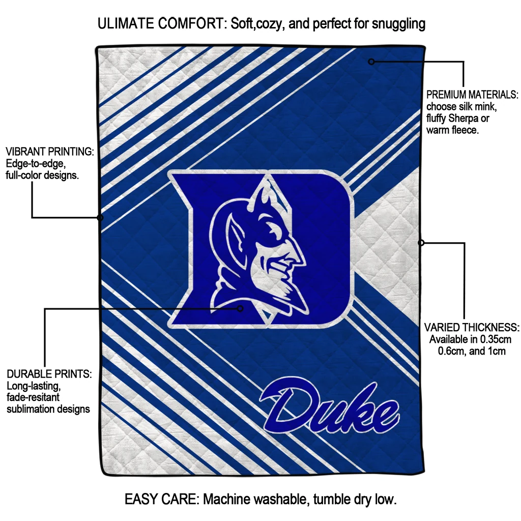 Wrap yourself in warmth and pride with the Duke Blue Devils Arrow Layers Blue Quilt Blanket from the Duke Blue Devils Blankets collection at Yes That Blanket. Made from 100% premium quilting-weight polyester blended with a touch of microfiber, this quilt offers a smooth, soft finish you’ll love. Choose between two quilting styles—Stipple or Diagonal—and enjoy the comfort of a cotton-filled layer inside that adds extra coziness for every season. The border is available in classic black or white, giving your design a clean, timeless edge.
