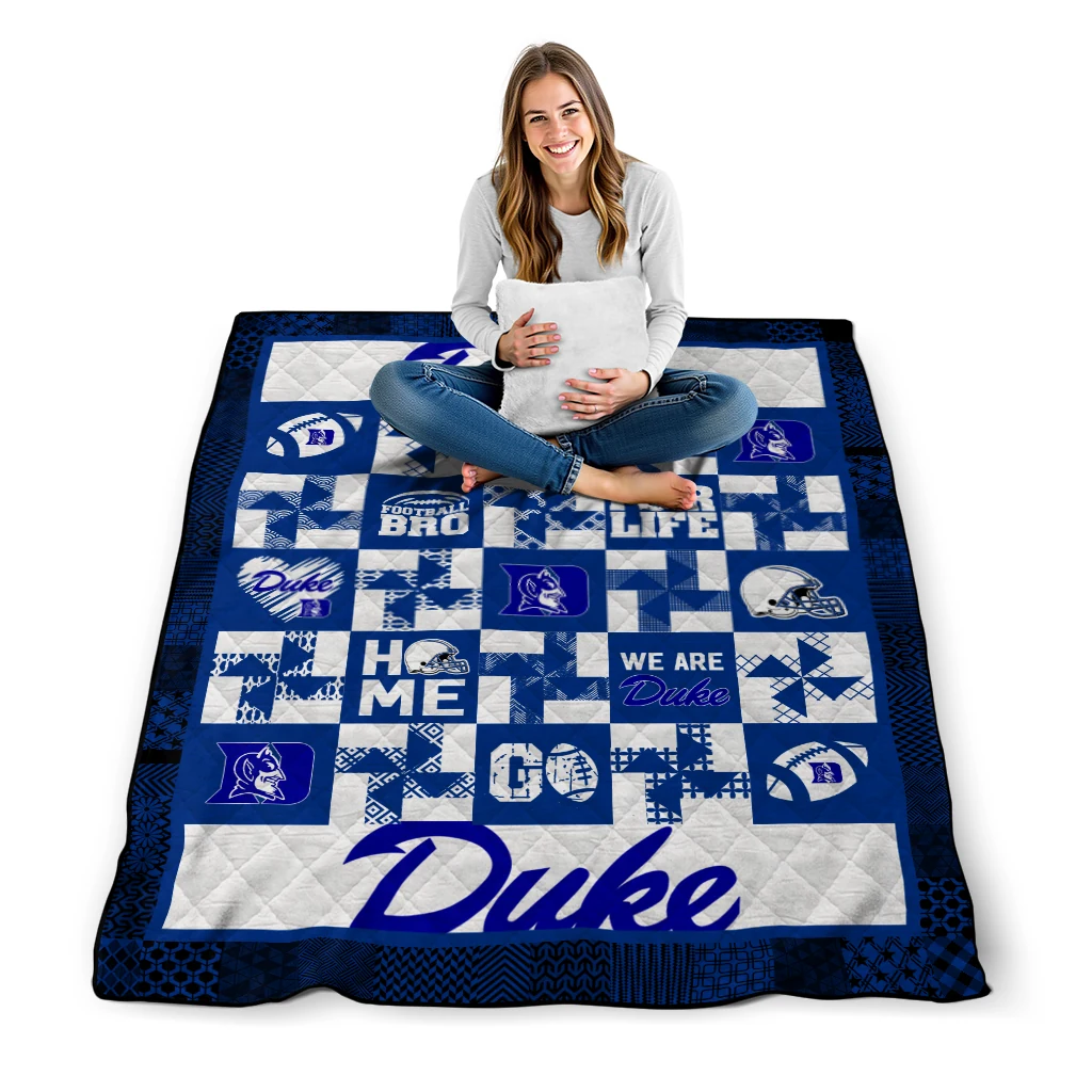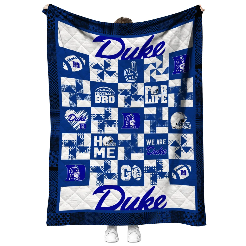 Wrap yourself in warmth and pride with the Duke Blue Devils Helmet Heart Blue Quilt Blanket from the Duke Blue Devils Blankets collection at Yes That Blanket. Made from 100% premium quilting-weight polyester blended with a touch of microfiber, this quilt offers a smooth, soft finish you’ll love. Choose between two quilting styles—Stipple or Diagonal—and enjoy the comfort of a cotton-filled layer inside that adds extra coziness for every season. The border is available in classic black or white, giving your design a clean, timeless edge.