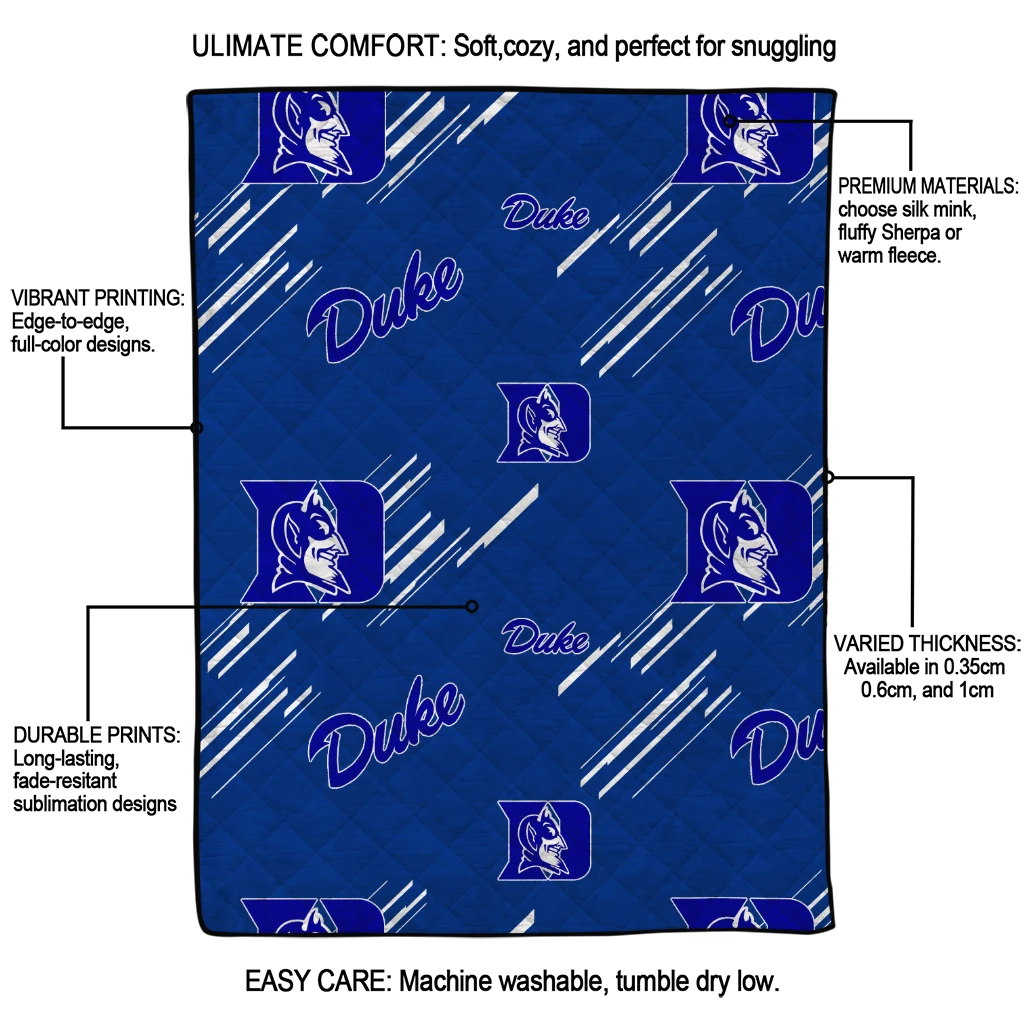 Duke Blue Devils Sketch Lines Blue Quilt Blanket