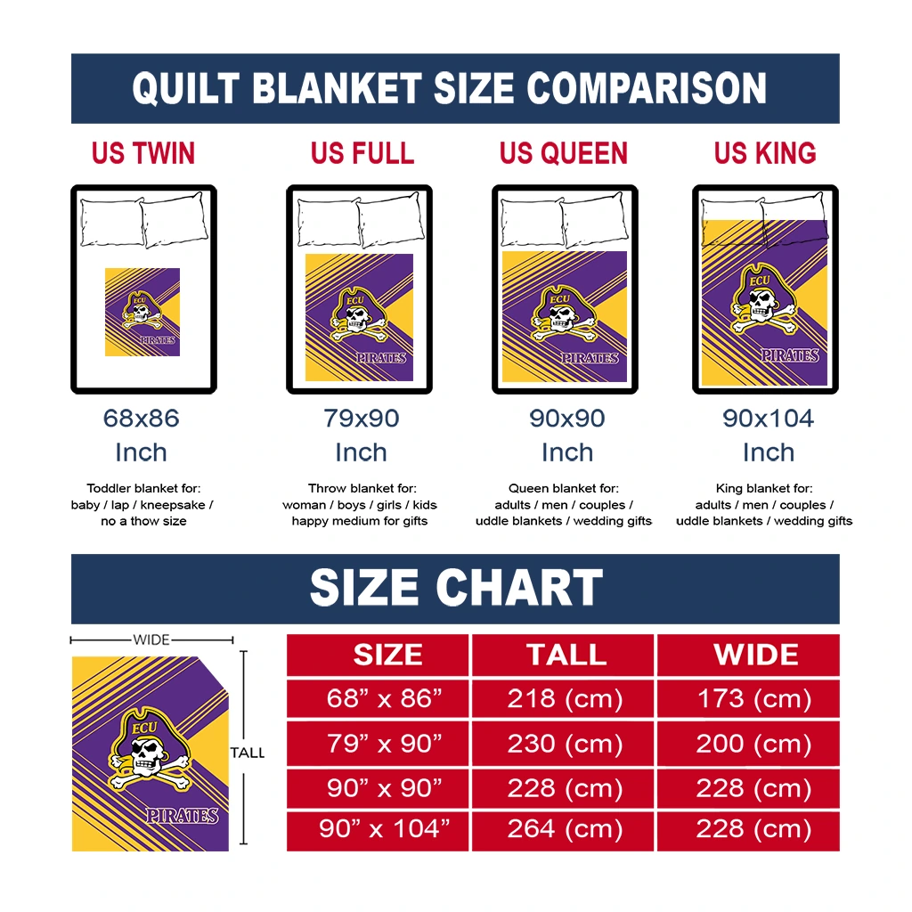 Wrap yourself in warmth and pride with the East Carolina Pirates Arrow Layers Purple Quilt Blanket from the East Carolina Pirates Blankets collection at Yes That Blanket. Made from 100% premium quilting-weight polyester blended with a touch of microfiber, this quilt offers a smooth, soft finish you’ll love. Choose between two quilting styles—Stipple or Diagonal—and enjoy the comfort of a cotton-filled layer inside that adds extra coziness for every season. The border is available in classic black or white, giving your design a clean, timeless edge.