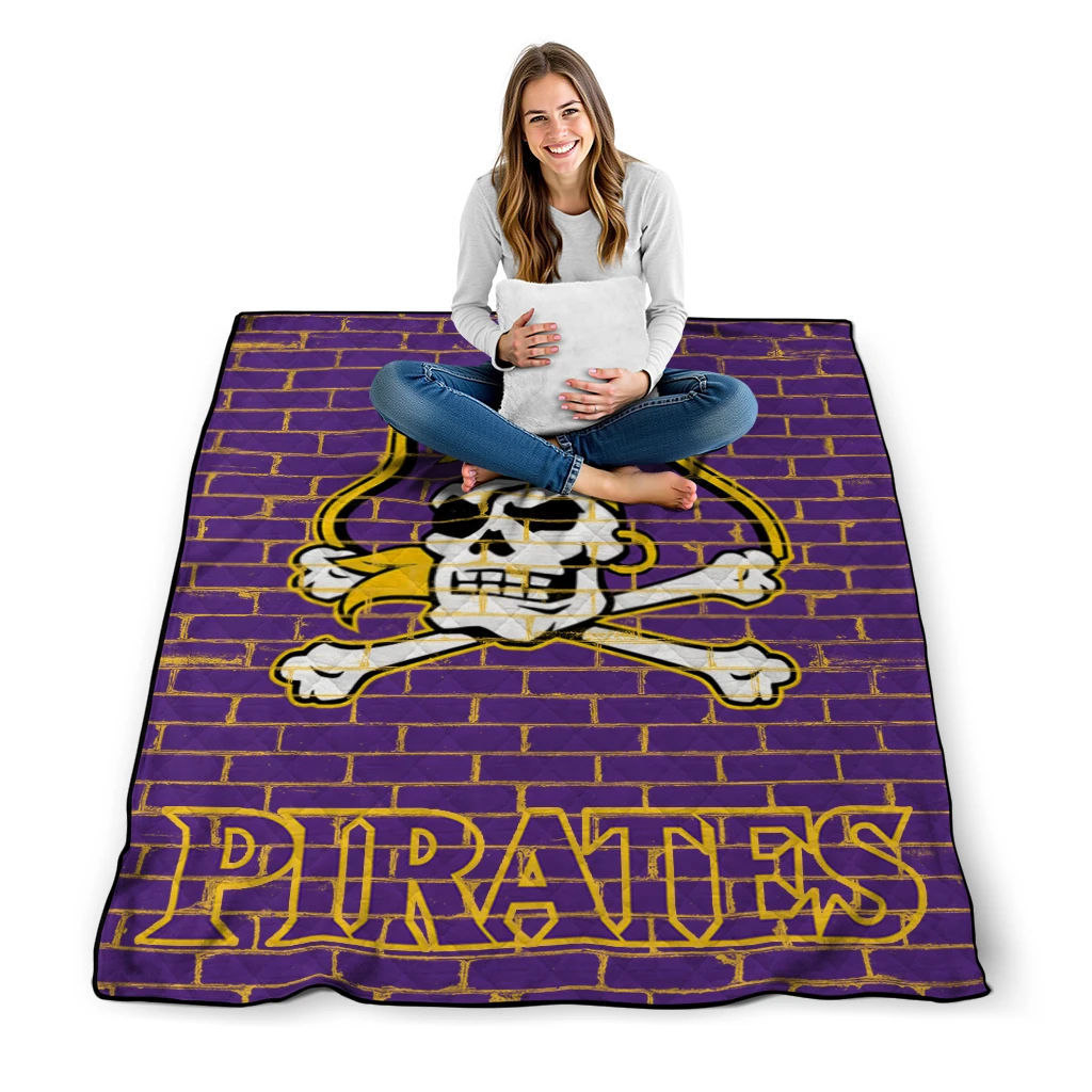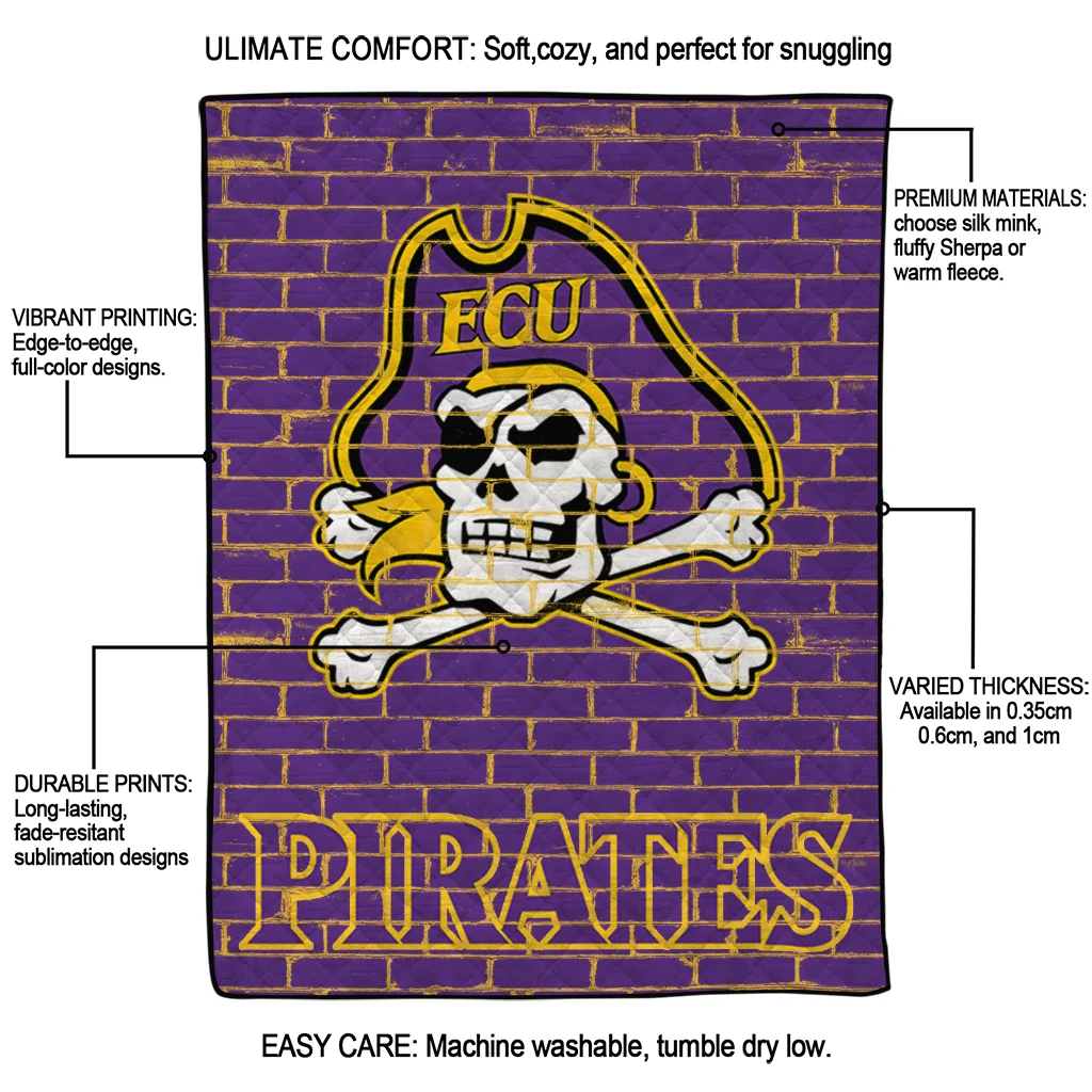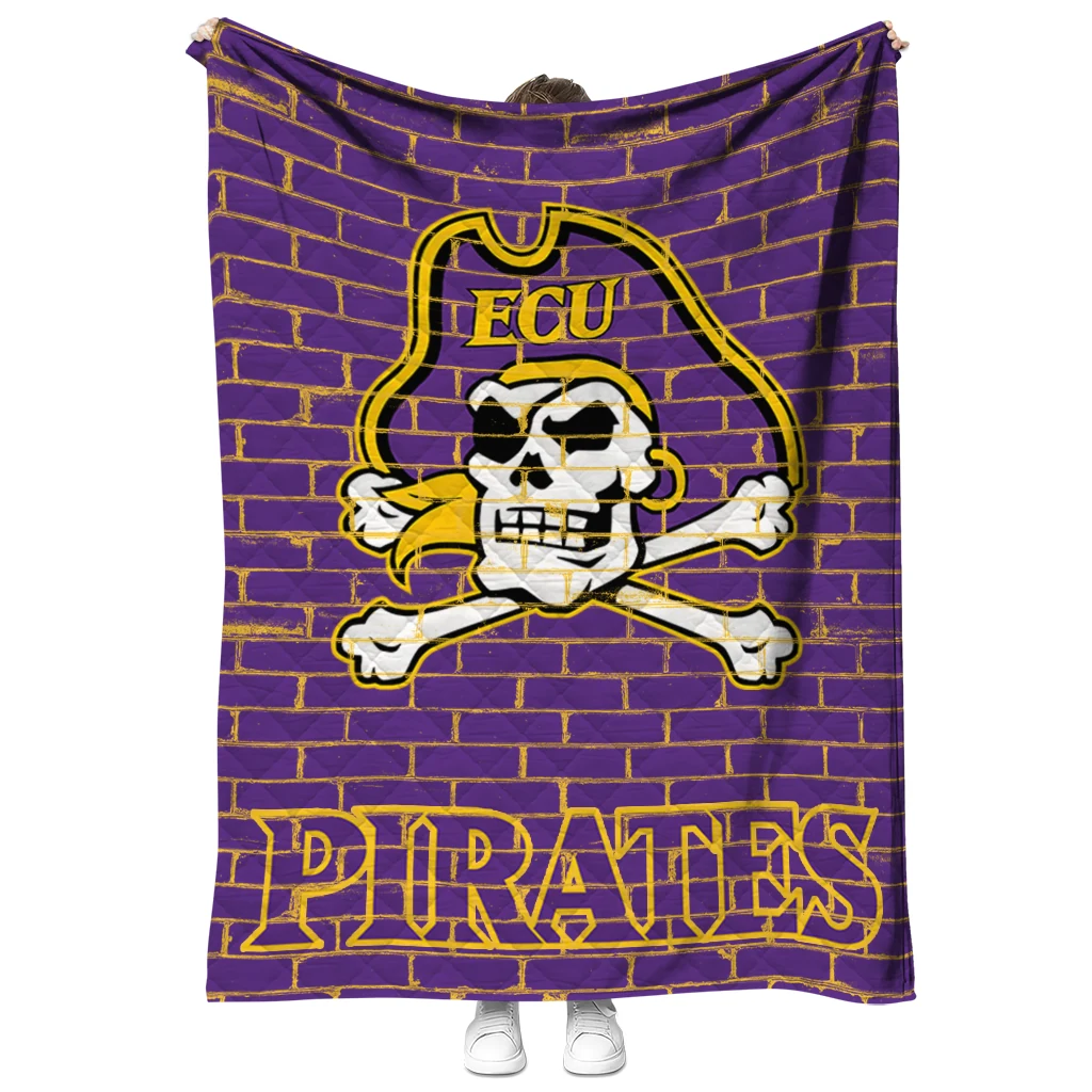 Wrap yourself in warmth and pride with the East Carolina Pirates Brick Grid Purple Quilt Blanket from the East Carolina Pirates Blankets collection at Yes That Blanket. Made from 100% premium quilting-weight polyester blended with a touch of microfiber, this quilt offers a smooth, soft finish you’ll love. Choose between two quilting styles—Stipple or Diagonal—and enjoy the comfort of a cotton-filled layer inside that adds extra coziness for every season. The border is available in classic black or white, giving your design a clean, timeless edge.