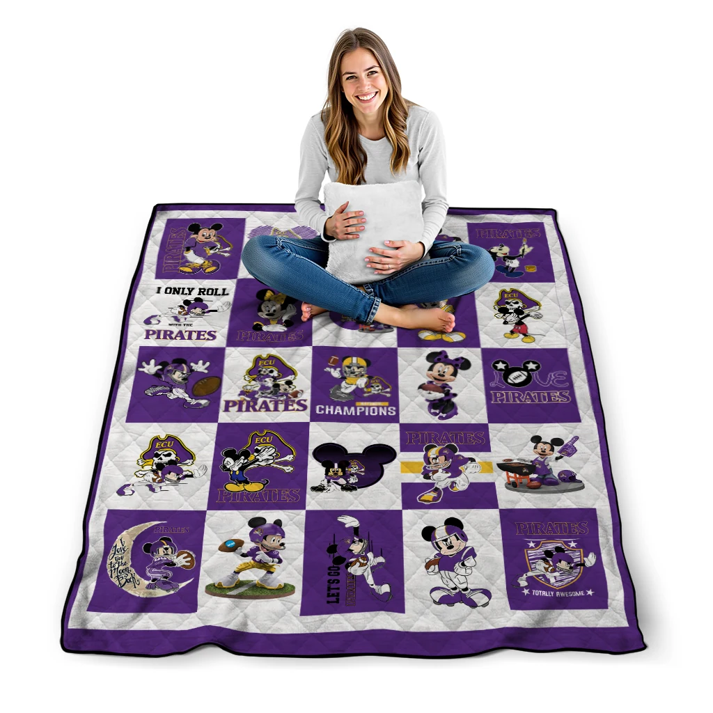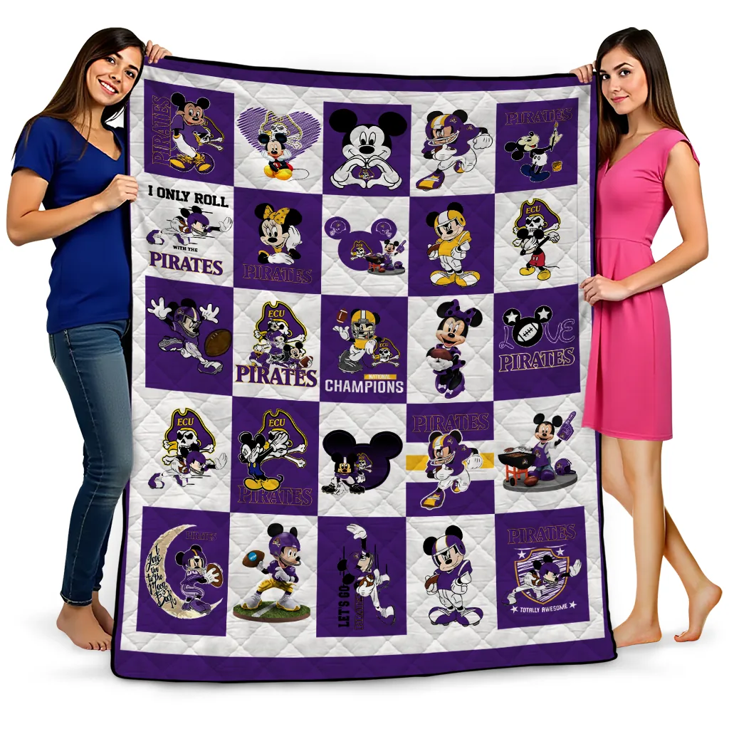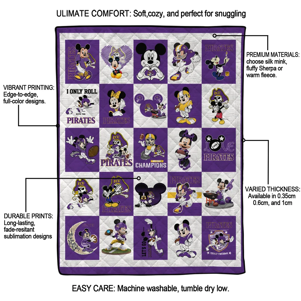East Carolina Pirates Mickey Mouse Motif Purple White Quilt Blanket